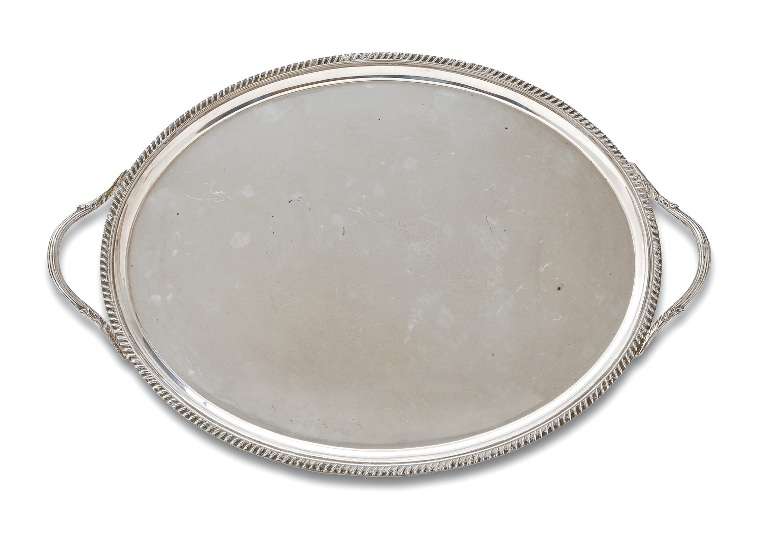 A George V silver tea tray, 53.5cm over handles, by Thomas Bradbury & Sons Ltd, Sheffield 1925, 61oz