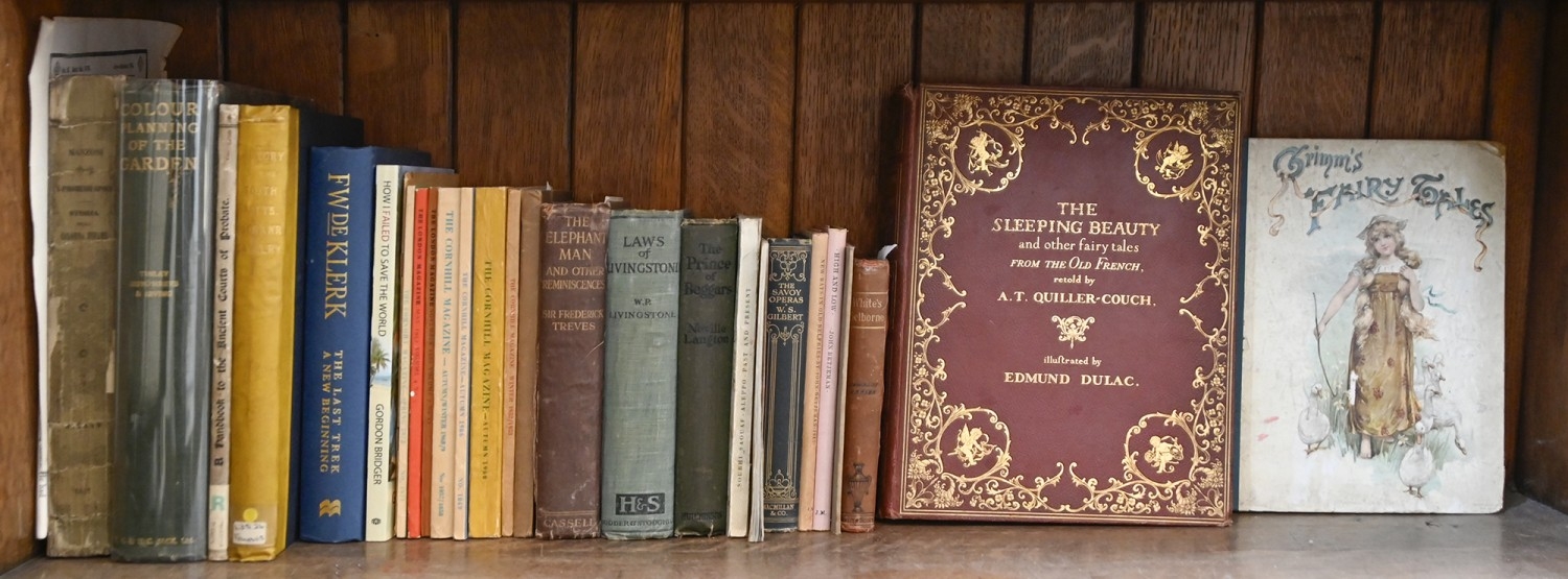 Illustrated Children's Book. Quiller-Couch (Sir Arthur) & Dulac (Edmun, illustrator), The Sleeping Beauty, and other fairy tales, London: Hodder & Stoughton, n.d. [1910], tipped-in colour plates, frontispiece with slight crease, original faux morocco binding, pictorial gilt, 4to; Andrews (E.J., illustrator) & Jacobs (S., illustrator), Grimm's Fairy Tales, London: Raphael Tuck & Sons, Ltd., n.d. [c. 1900], colour plates, b/w in-text illustrations, original pictorial boards, 4to; further antiquarian and later books, including three anthologies of poetry by John Betjeman, one of which is illustrated by John Piper, mixed original publisher's bindings as issued, various sizes; his appearances in The Cornhill, Winter 1952/53, The Centenary Number 1860-1960, Autumn 1966, Anniversary Double Number 1968-69, & Spring 1972, and The London Magazine, May 1957 & November 1960, original wrappers, 8vo; Fellows (George), History of the South Notts. Yeomanry Cavalry 1794 to 1894, Nottingham: Thomas Forman & Sons, 1895, illustrated, ex-lib, original two-tone cloth, 4to; The Elephant Man; Livingstone and missionaries; etc