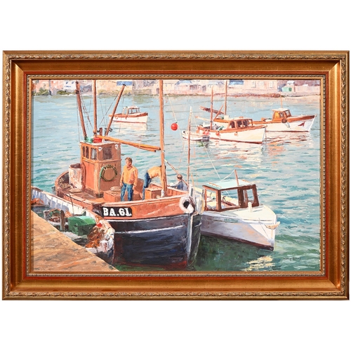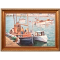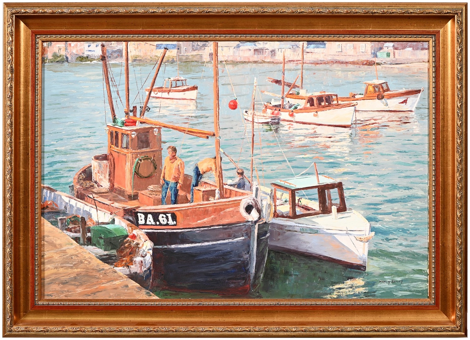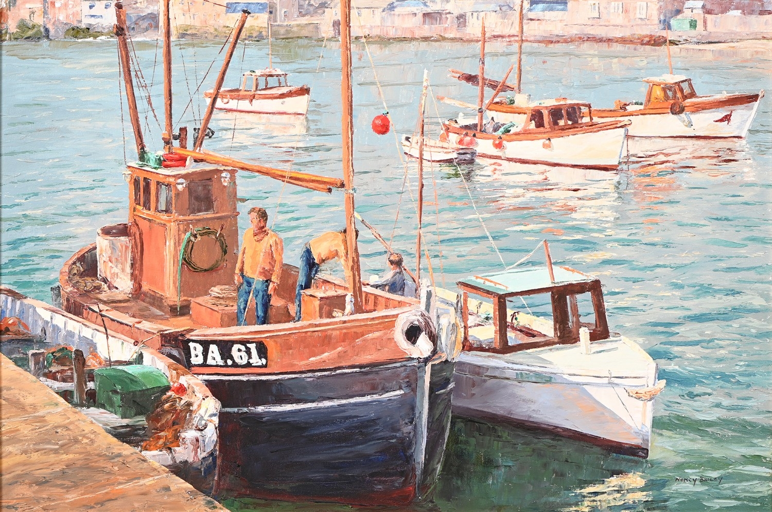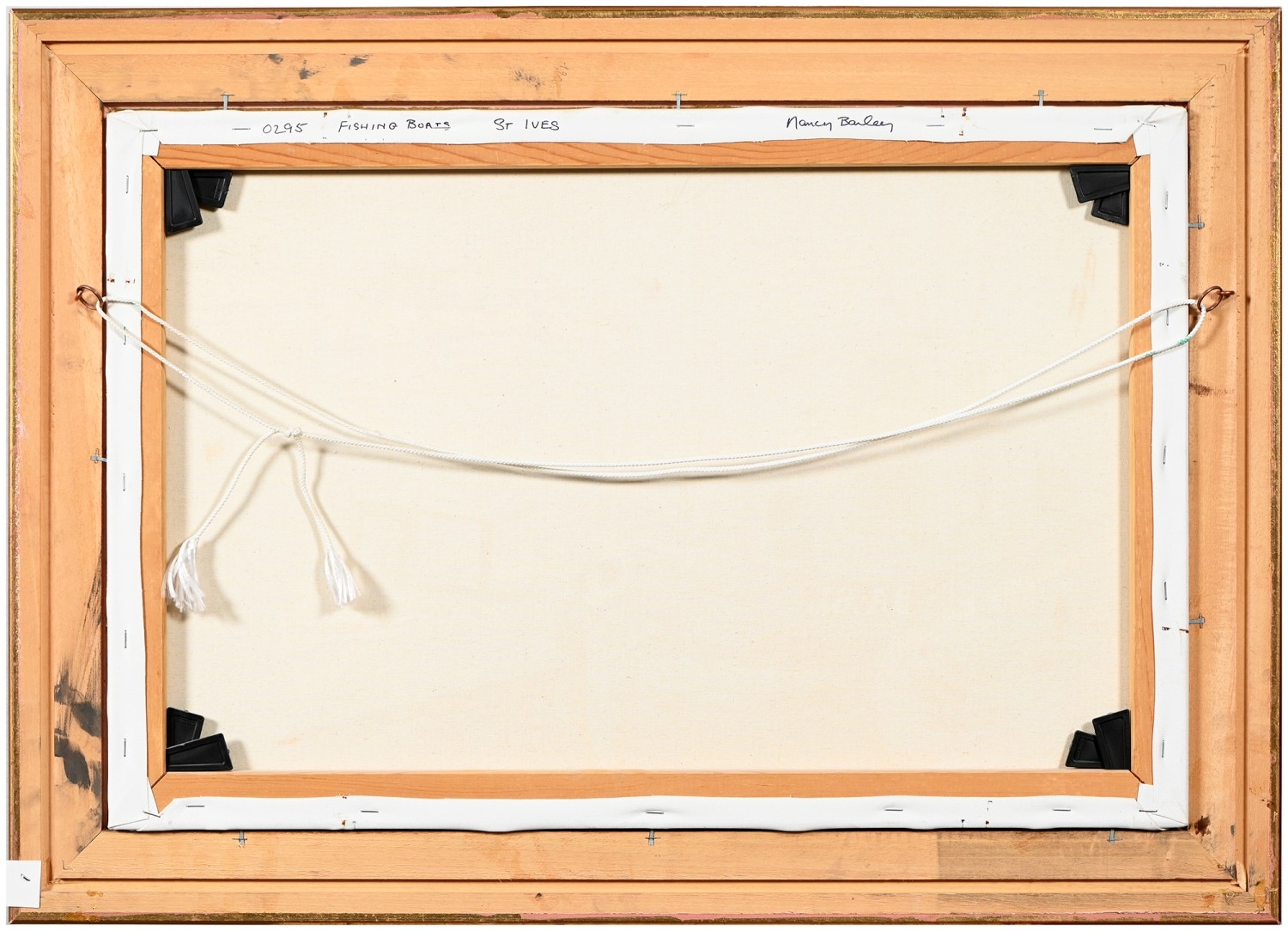 Nancy Bailey (1913-2012) - Fishing Boats, St Ives, signed, signed again and inscribed on the overlap, oil on canvas, 50 x 75cm