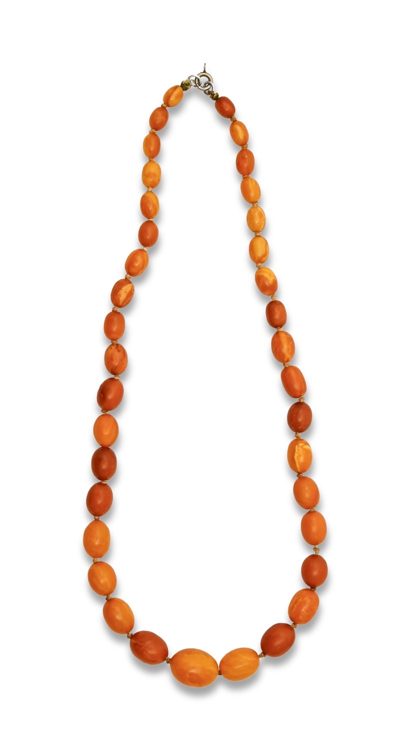 A necklace of amber beads, 23.3g