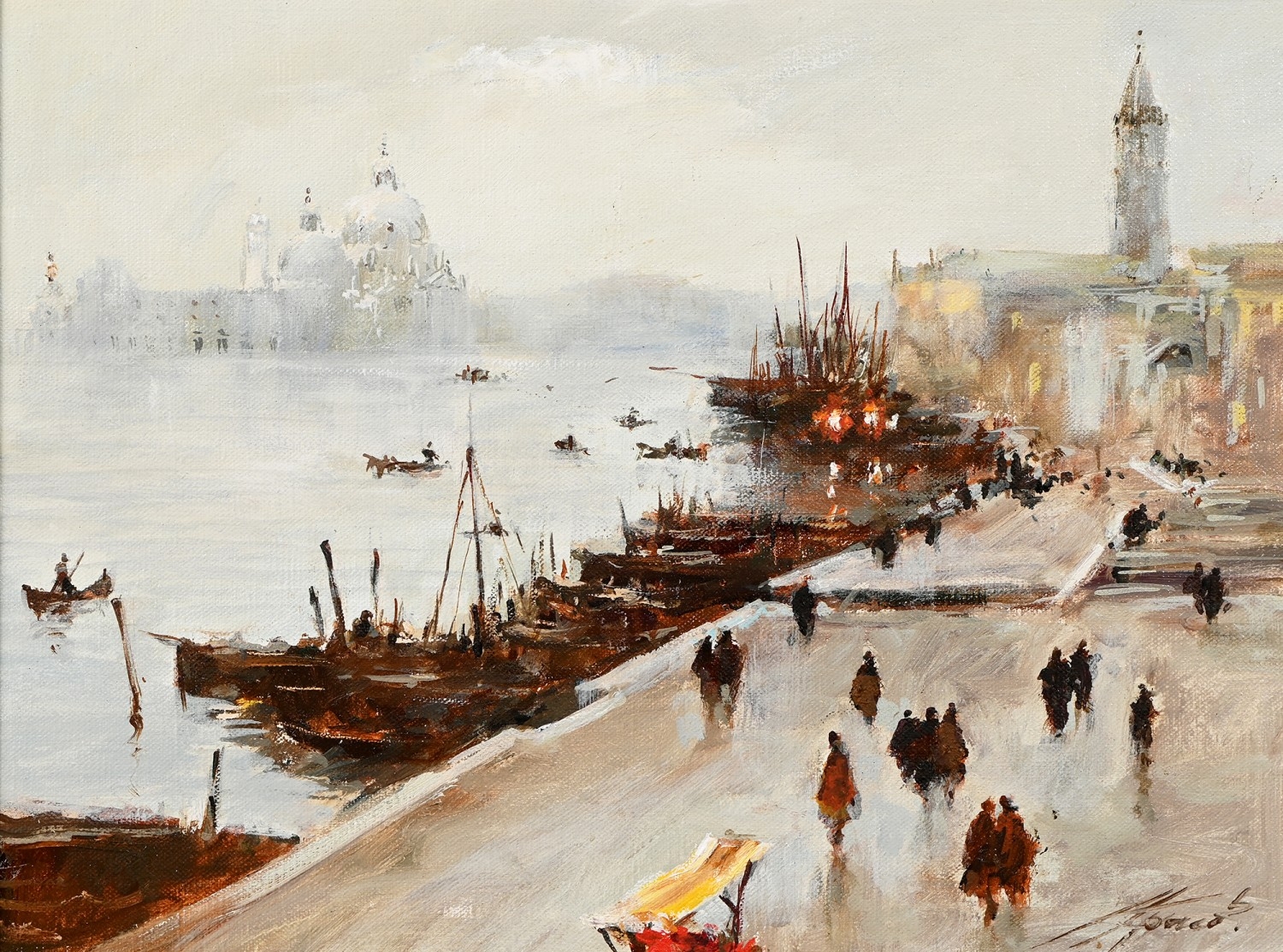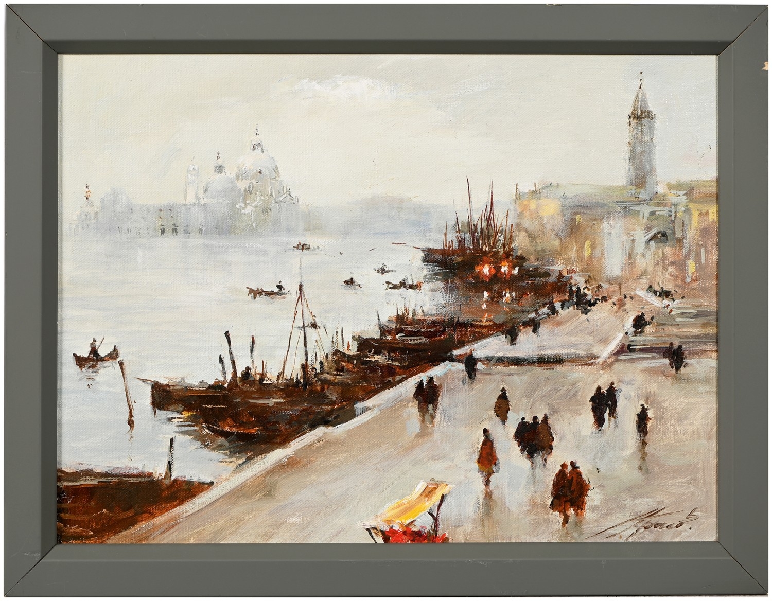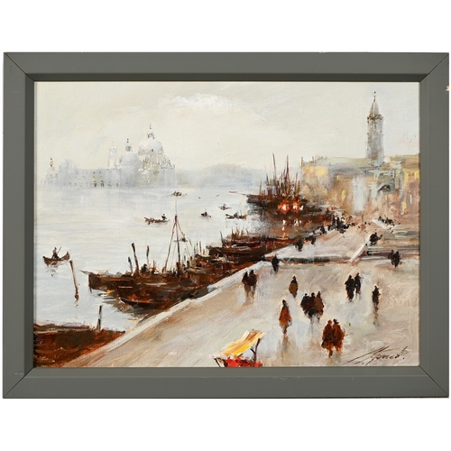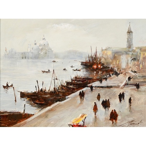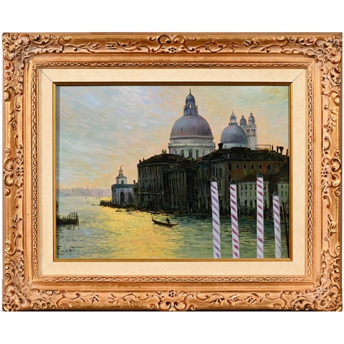 Raffaele Fiore (b. 1961) - The Grand Canal, Venice, signed, oil on panel, 29 x 39.5cm, with another Venetian scene, indistinctly signed, oil on canvas, 28 x 38.5cm, (2)