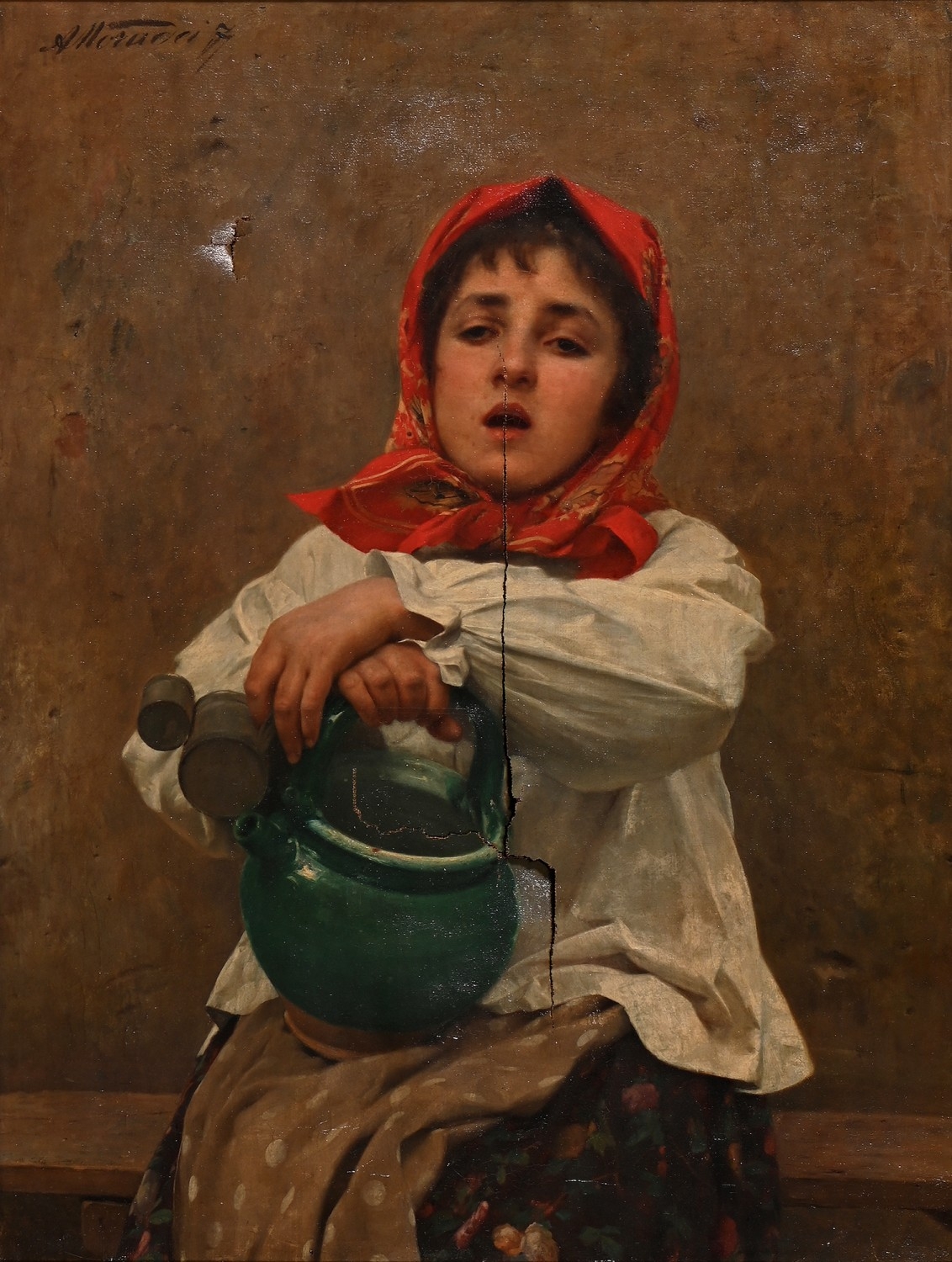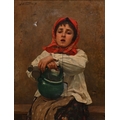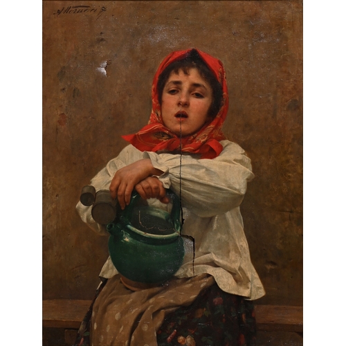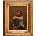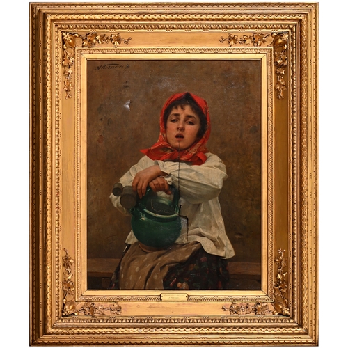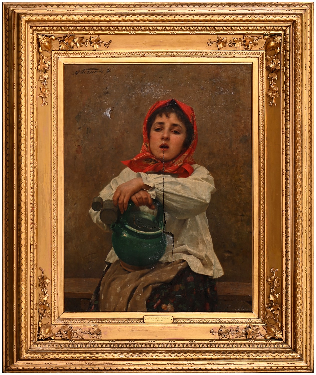 Arturo Moradei (1840-1901) - A Roman Milk Seller, signed, oil on canvas, 93 x 70cm, contemporary elaborate gilt frame applied with holly leaves