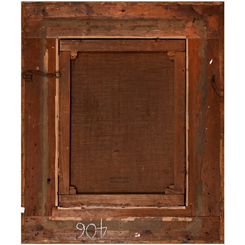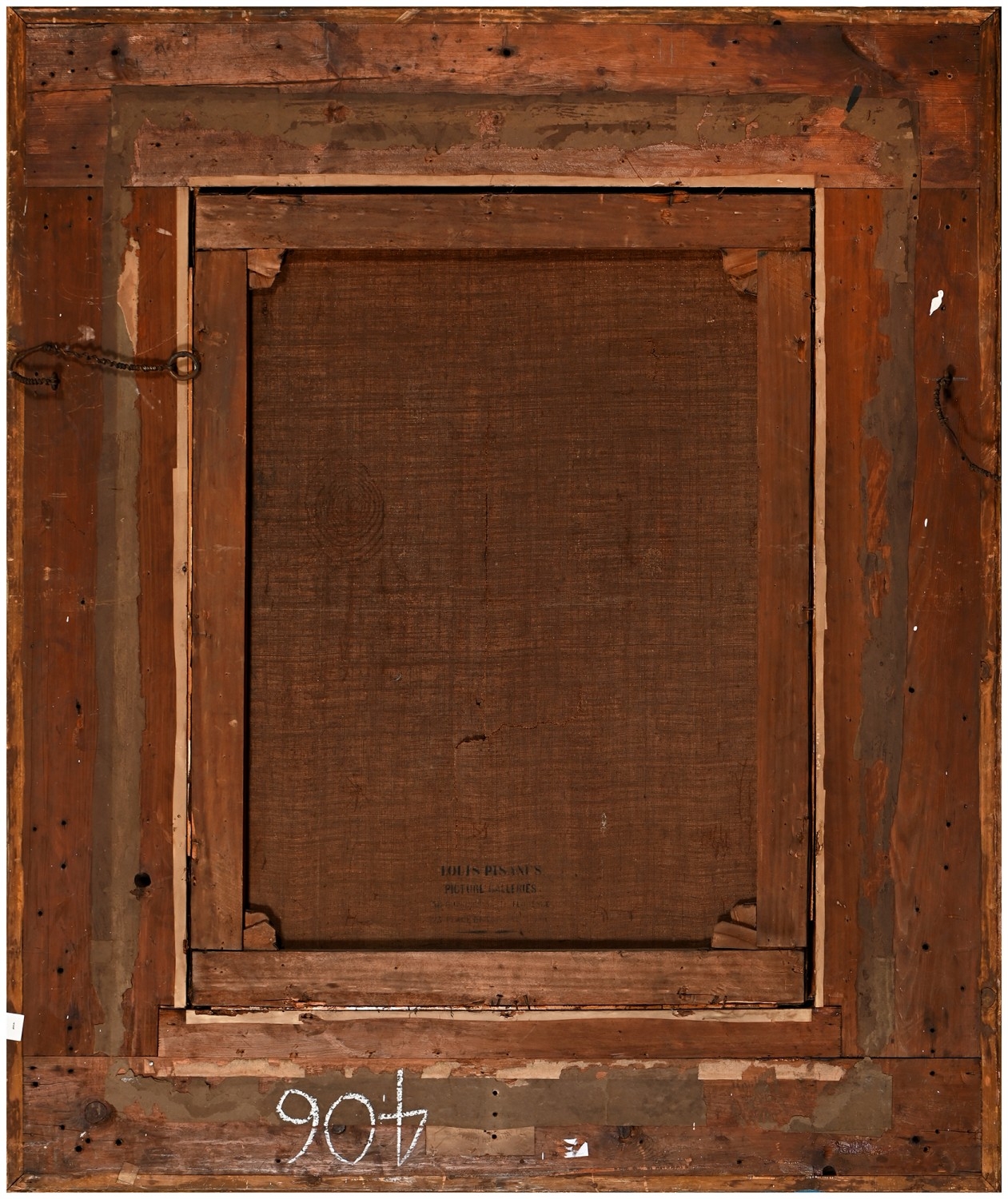 Support torn, unlined on the original stretchers and unrestored, the high quality frame in good condition and the original gilding which is slightly rubbed in places