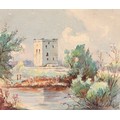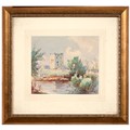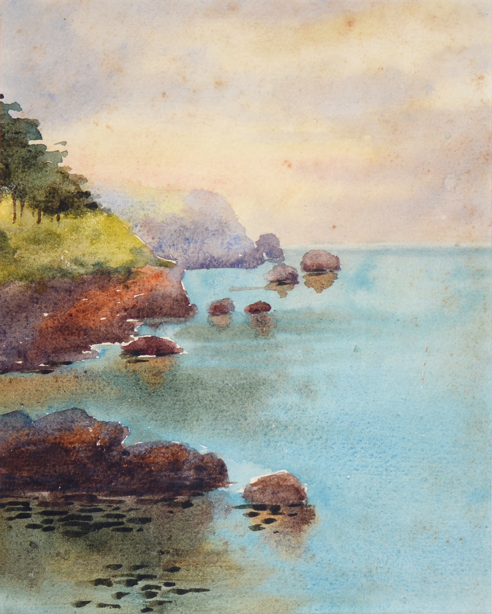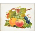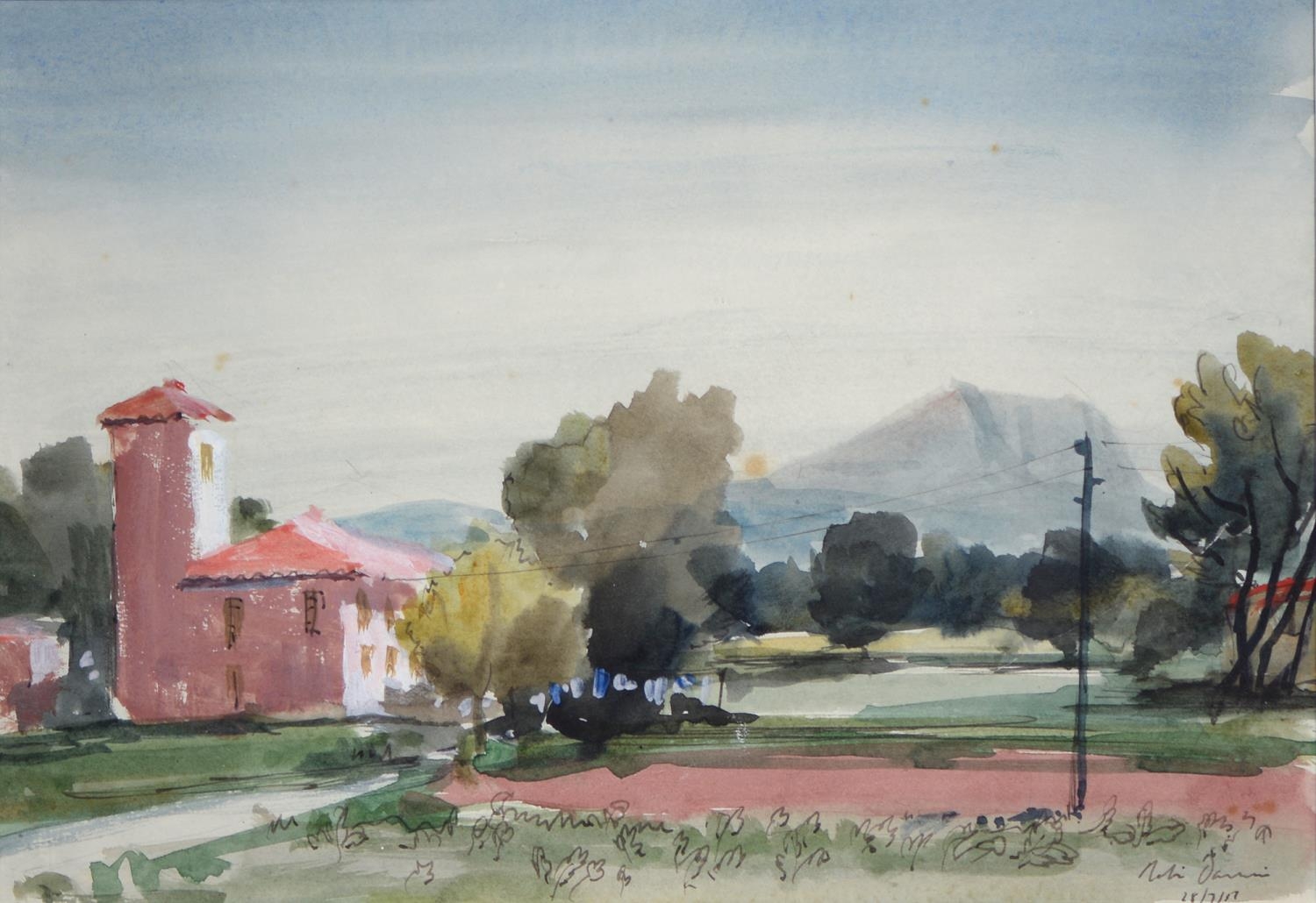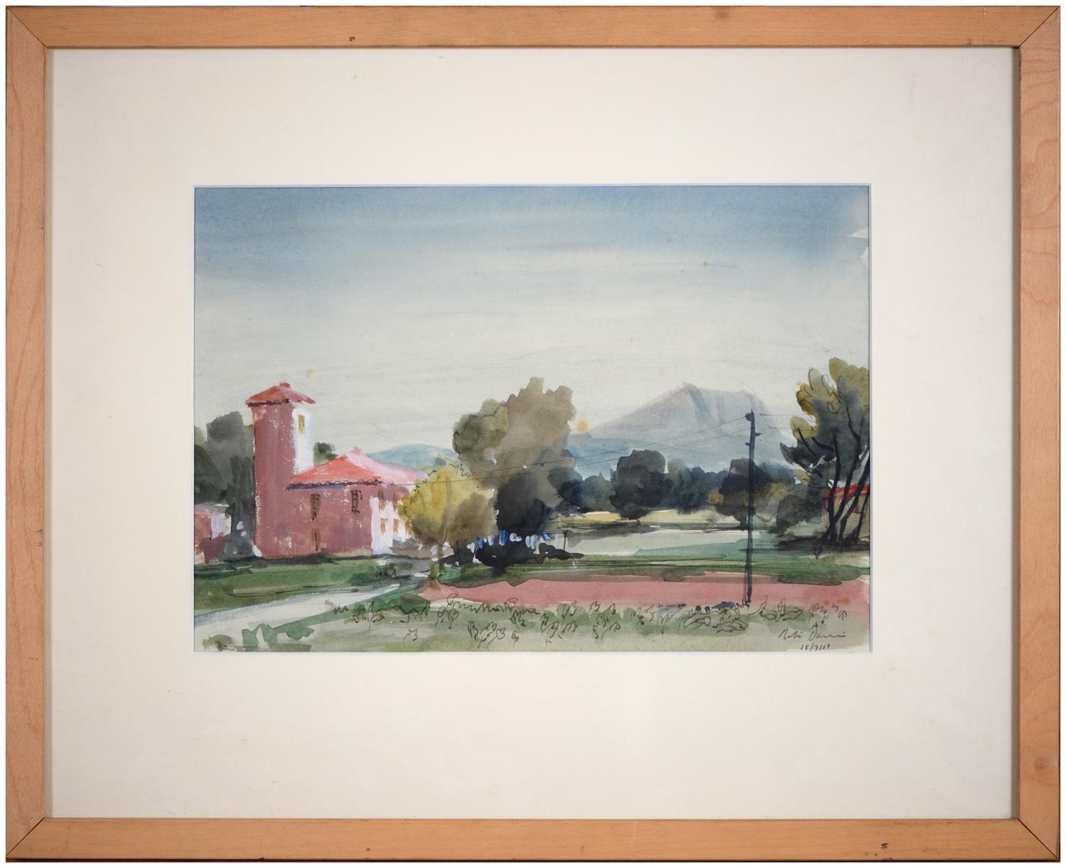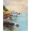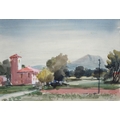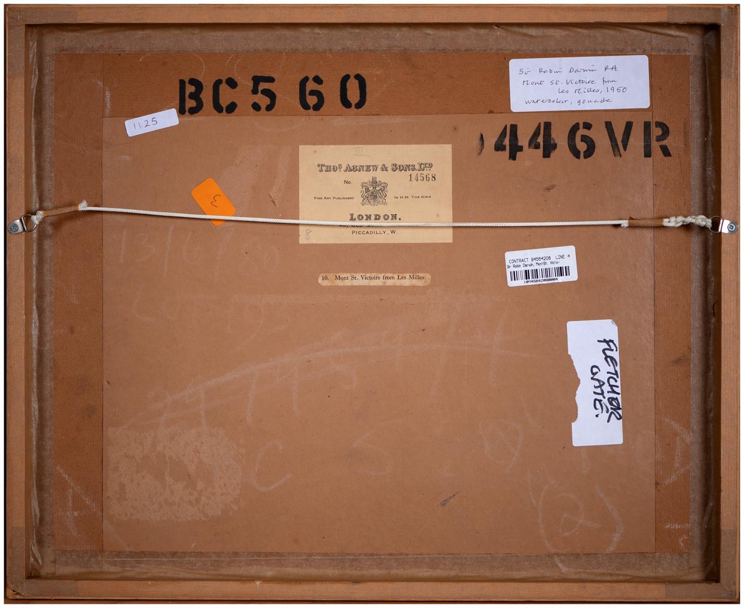 Sir Robin Darwin RA (1910-1974) - Mount St Victoire from Les Villes, signed and dated '17, pen, ink and watercolour with white, 23 x 33.5cm, Provenance: Thomas Agnew & Sons Ltd, Peter Cronin (1963- ) - European Street Scene with Cafe, signed, watercolour, 24.5 x 32.5cm, English School - A Rocky Coast, watercolour, 19.5 x 15.5cm and two other landscape watercolours, one by Patricia Hall, William Rayworth (c.1852-1908) - Still Lifes with Fruit, a pair, both signed, oil on white opaque glass, 19 x 24cm and Hedley Carrington (Fl. 20th / 21st c) - "Ships Cheese Please Ben Gunn Treasure Island"; Card Players; Judge, three, all signed and dated '08 or '10, pen, ink and wash, 15.5 x 21.5cm and smaller and a watercolour of a tower by another, 1956 (11)