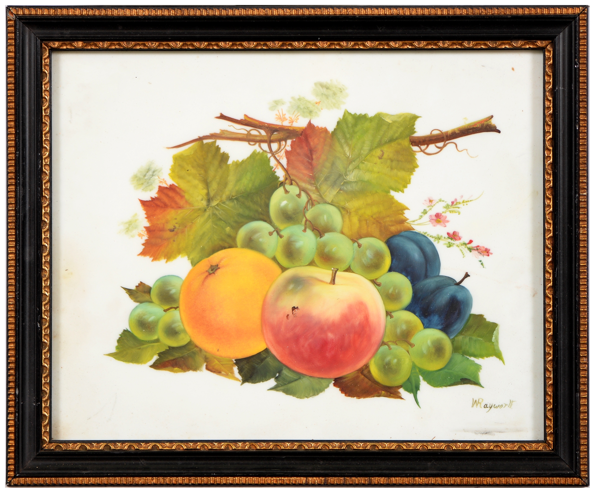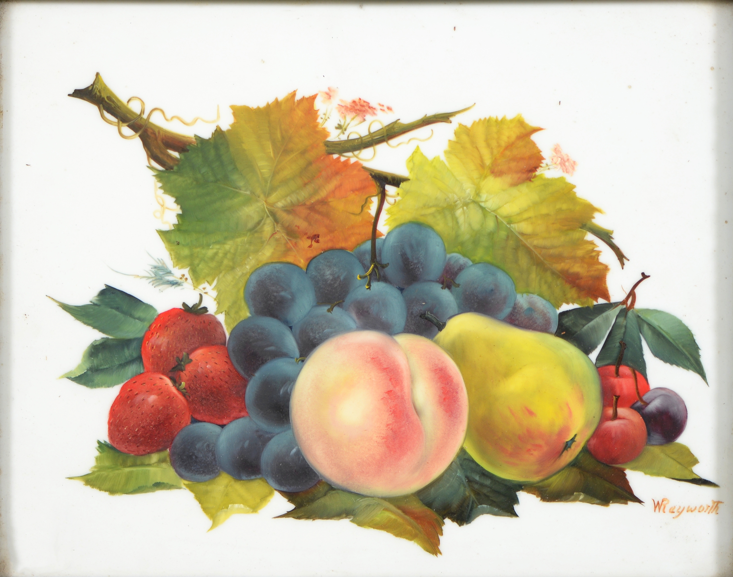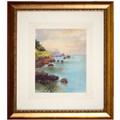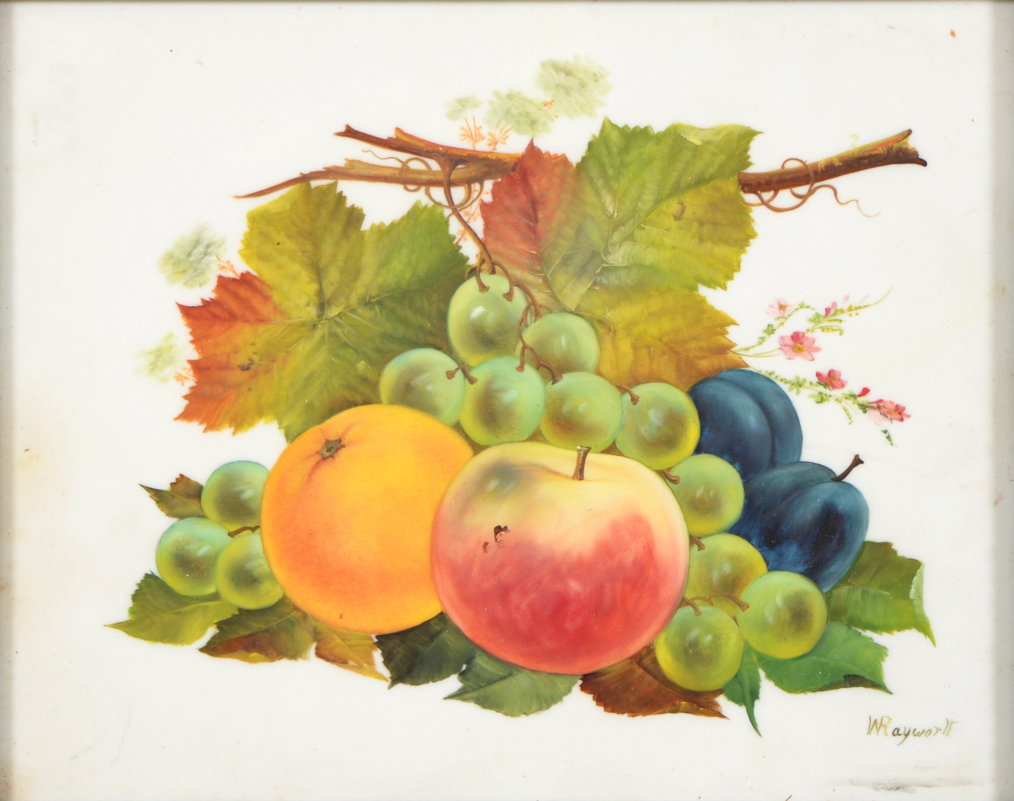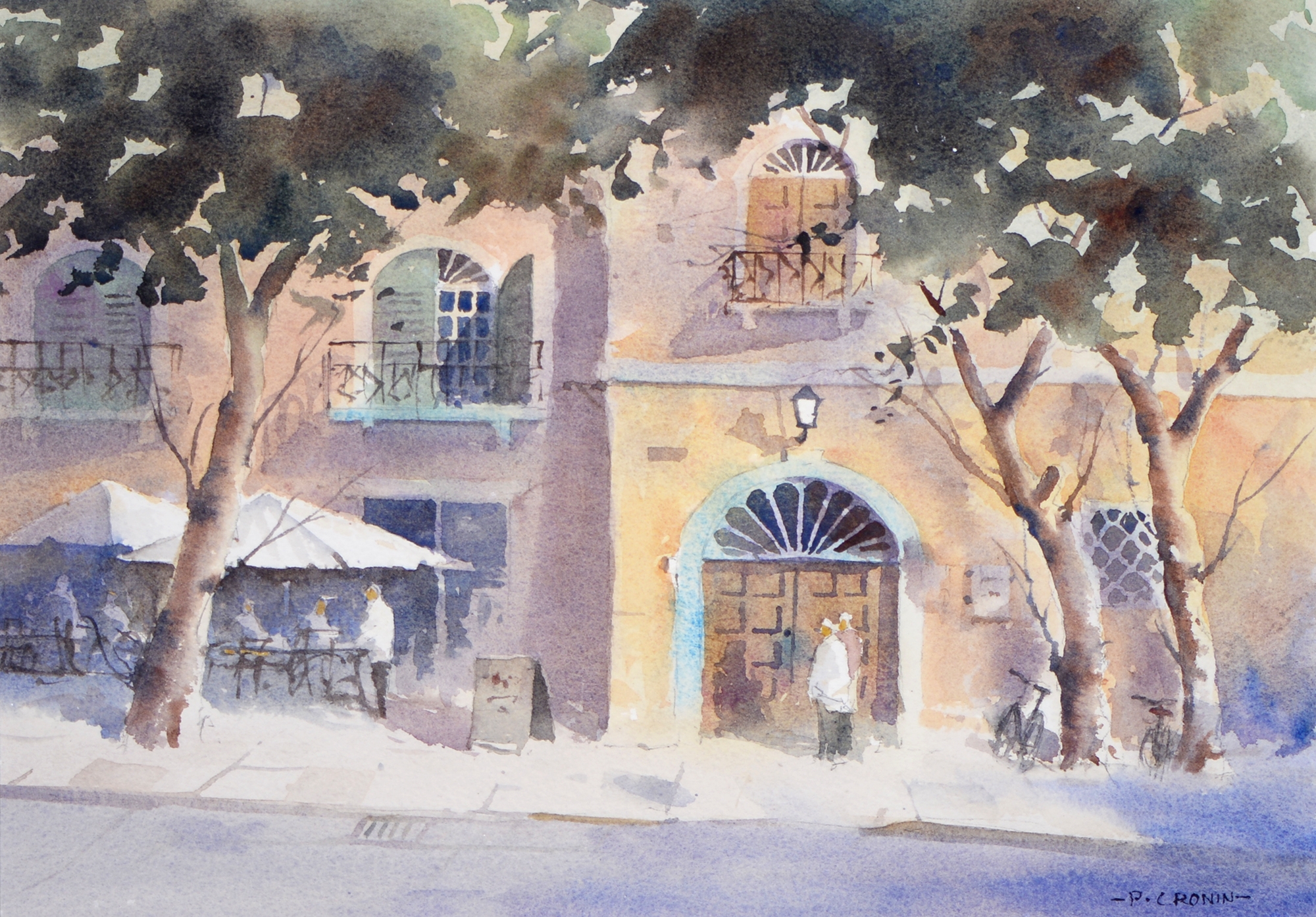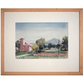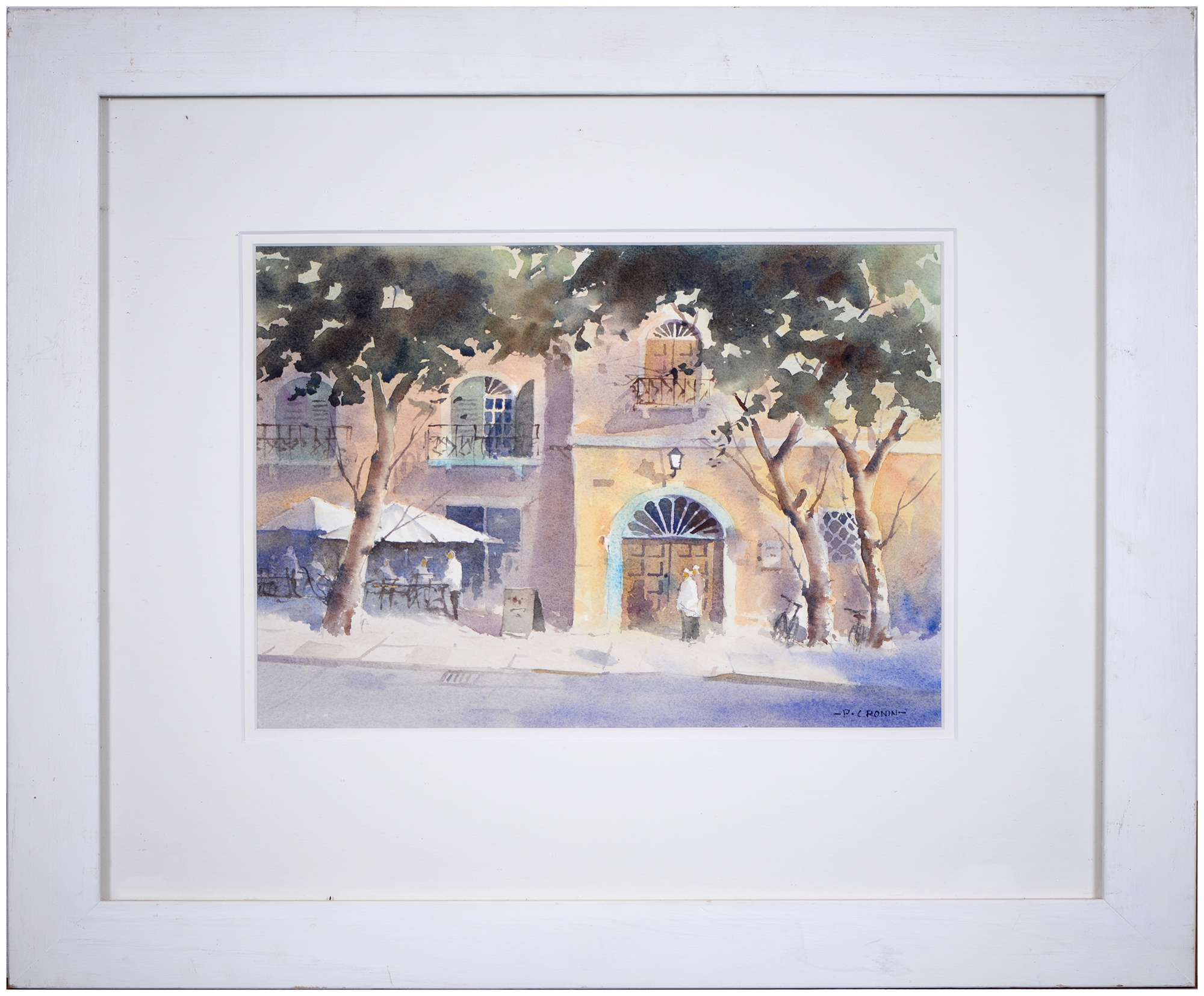 Sir Robin Darwin RA (1910-1974) - Mount St Victoire from Les Villes, signed and dated '17, pen, ink and watercolour with white, 23 x 33.5cm, Provenance: Thomas Agnew & Sons Ltd, Peter Cronin (1963- ) - European Street Scene with Cafe, signed, watercolour, 24.5 x 32.5cm, English School - A Rocky Coast, watercolour, 19.5 x 15.5cm and two other landscape watercolours, one by Patricia Hall, William Rayworth (c.1852-1908) - Still Lifes with Fruit, a pair, both signed, oil on white opaque glass, 19 x 24cm and Hedley Carrington (Fl. 20th / 21st c) - "Ships Cheese Please Ben Gunn Treasure Island"; Card Players; Judge, three, all signed and dated '08 or '10, pen, ink and wash, 15.5 x 21.5cm and smaller and a watercolour of a tower by another, 1956 (11)