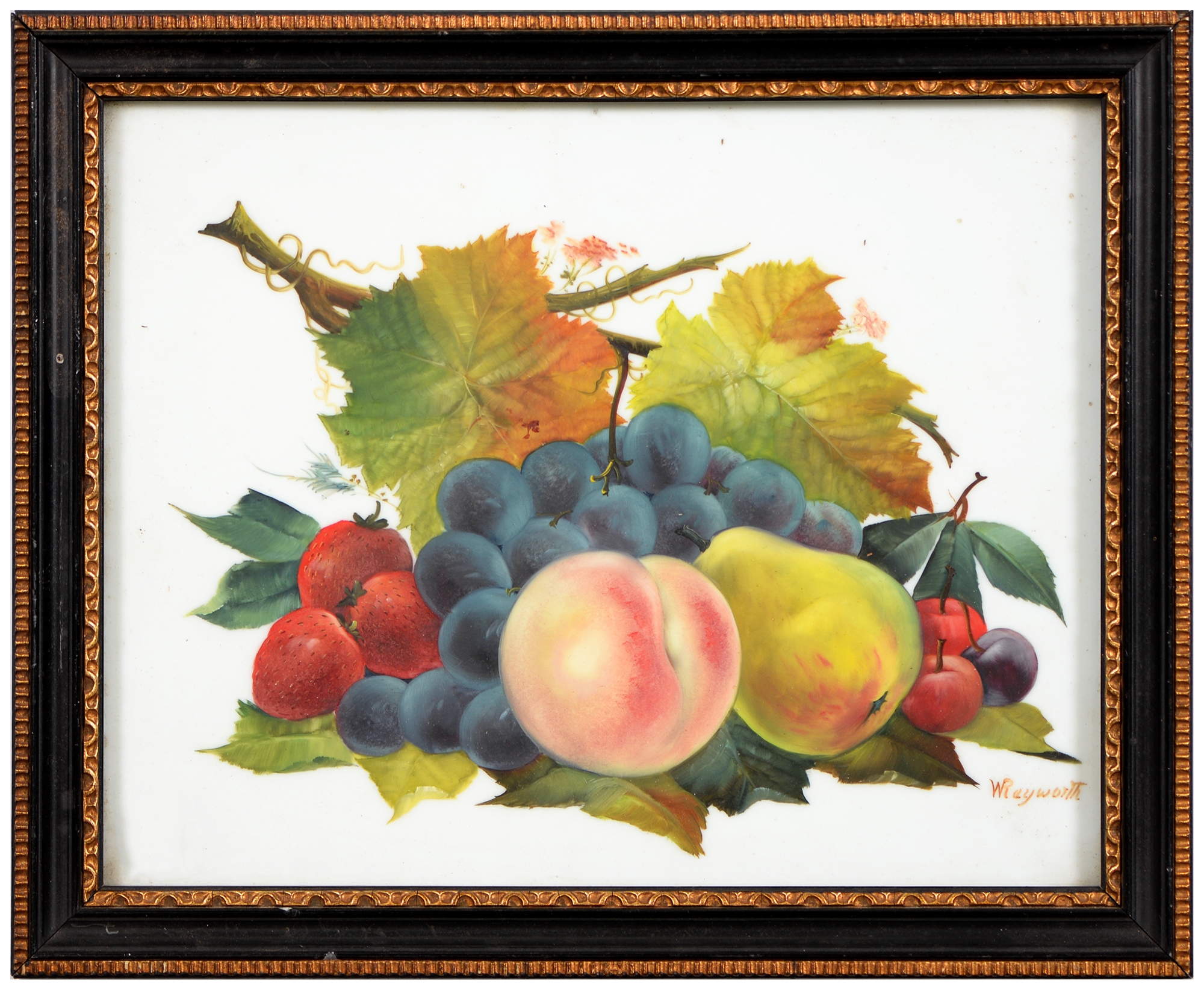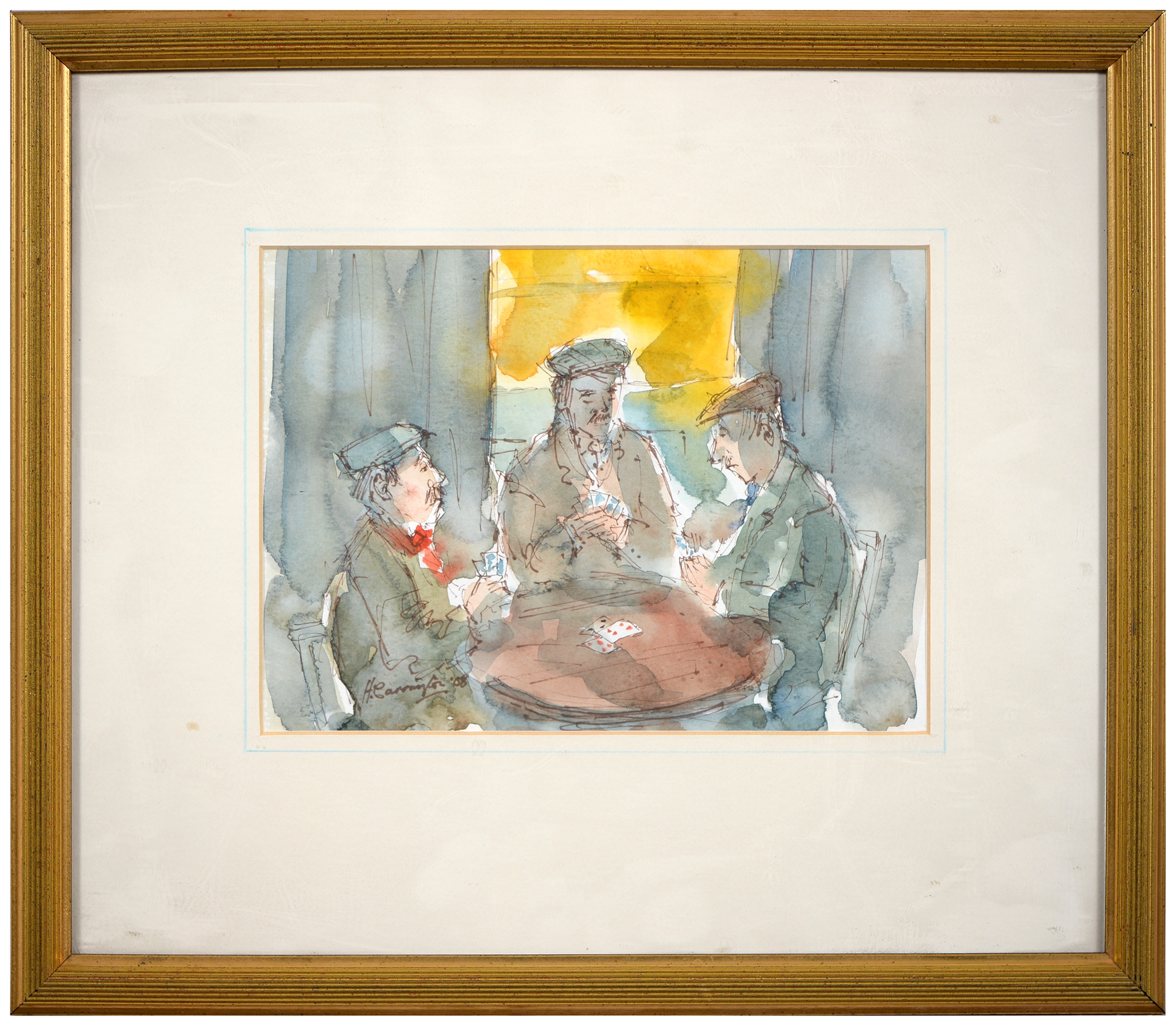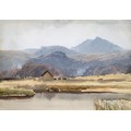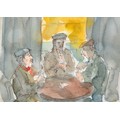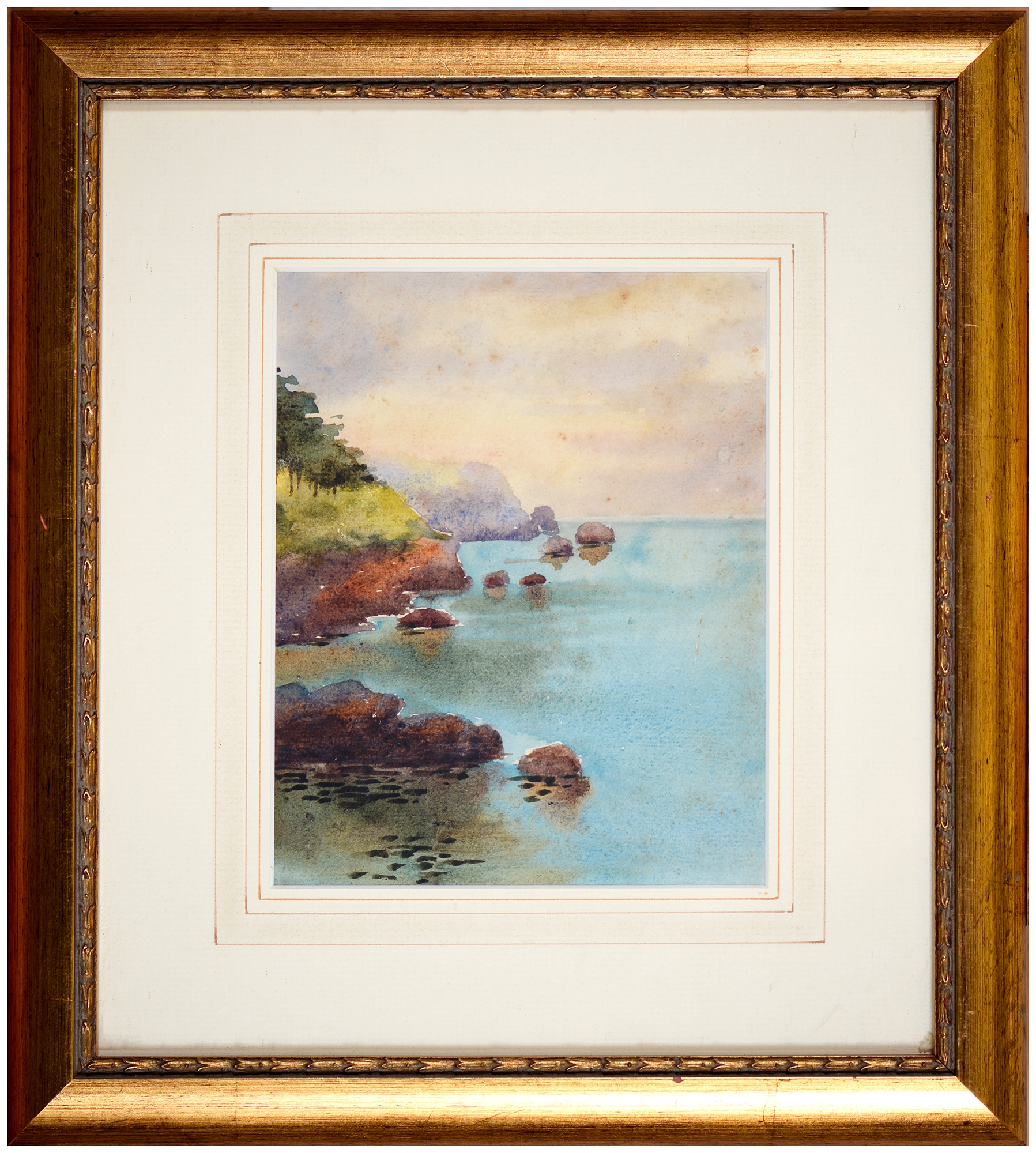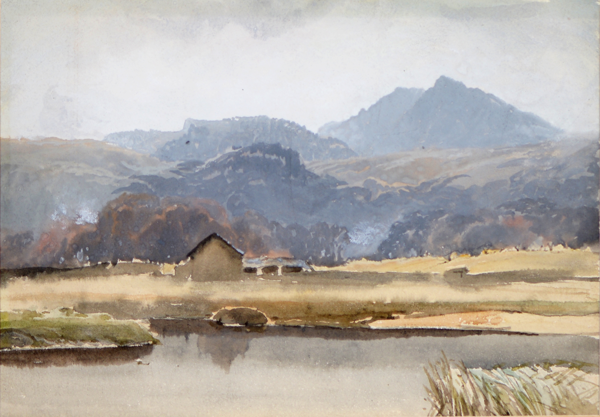 Sir Robin Darwin RA (1910-1974) - Mount St Victoire from Les Villes, signed and dated '17, pen, ink and watercolour with white, 23 x 33.5cm, Provenance: Thomas Agnew & Sons Ltd, Peter Cronin (1963- ) - European Street Scene with Cafe, signed, watercolour, 24.5 x 32.5cm, English School - A Rocky Coast, watercolour, 19.5 x 15.5cm and two other landscape watercolours, one by Patricia Hall, William Rayworth (c.1852-1908) - Still Lifes with Fruit, a pair, both signed, oil on white opaque glass, 19 x 24cm and Hedley Carrington (Fl. 20th / 21st c) - "Ships Cheese Please Ben Gunn Treasure Island"; Card Players; Judge, three, all signed and dated '08 or '10, pen, ink and wash, 15.5 x 21.5cm and smaller and a watercolour of a tower by another, 1956 (11)