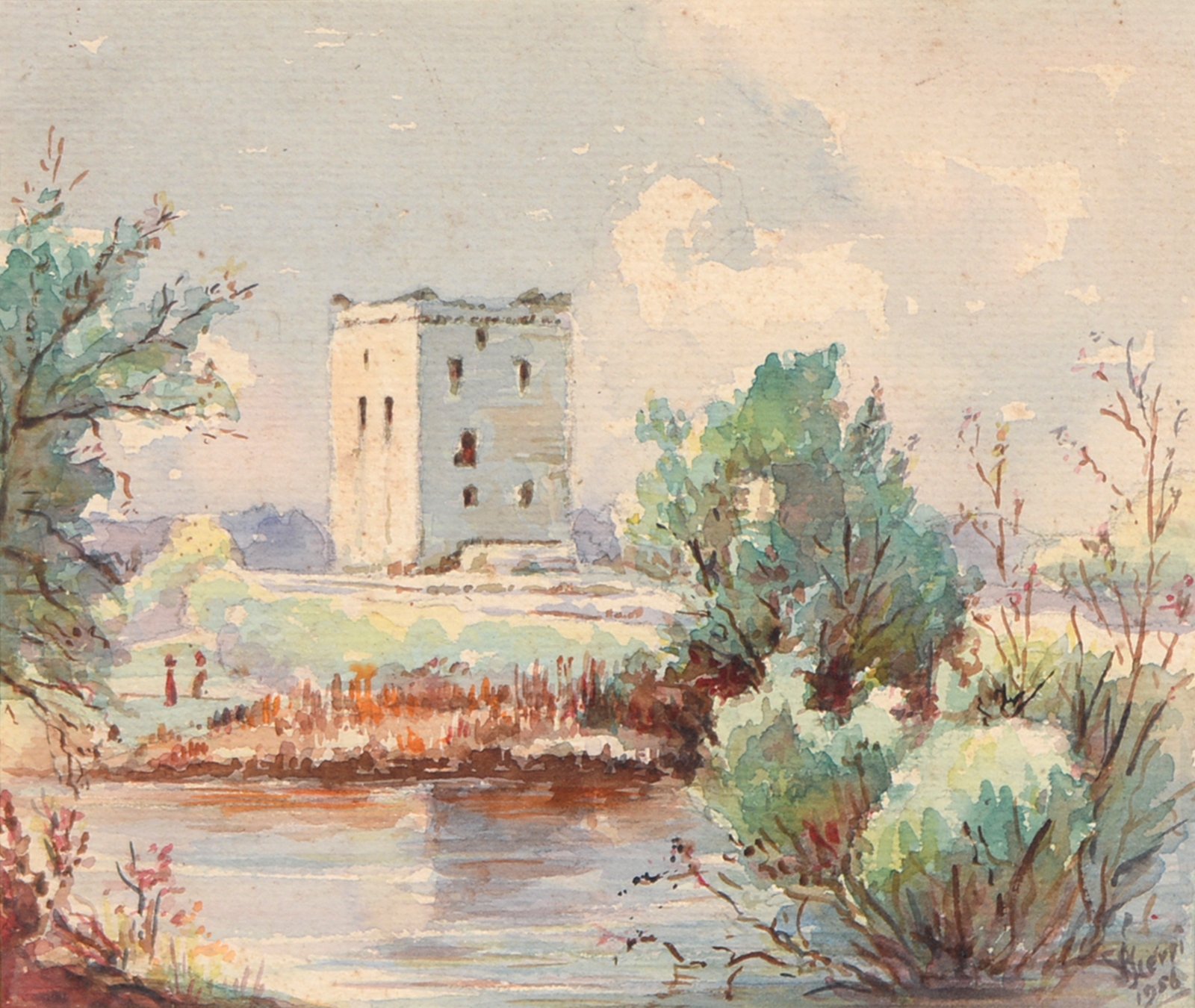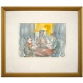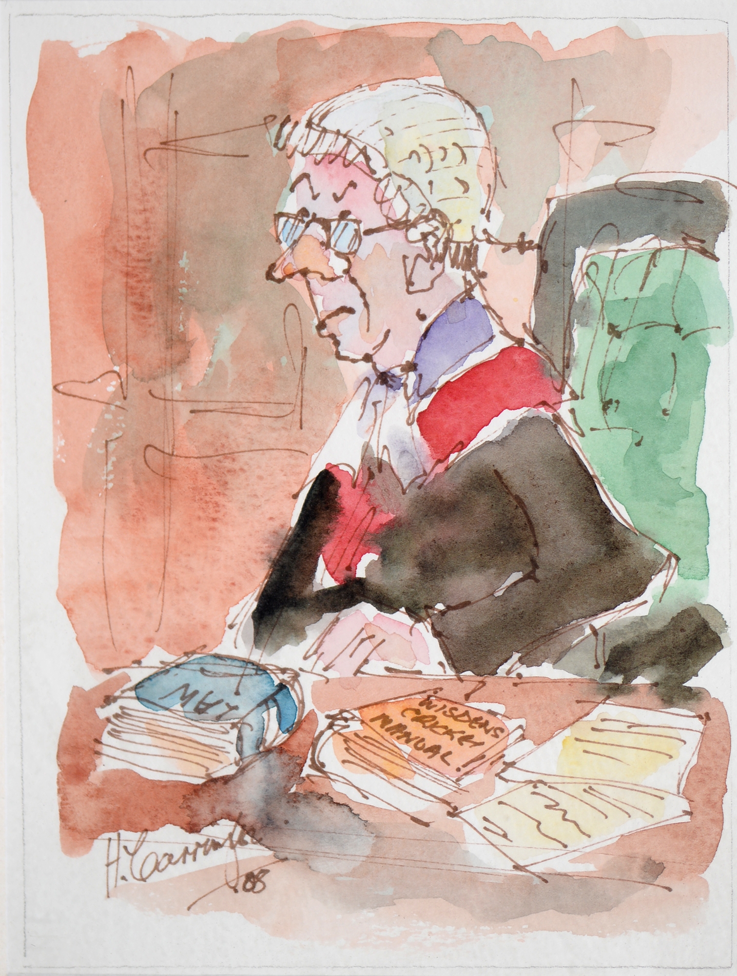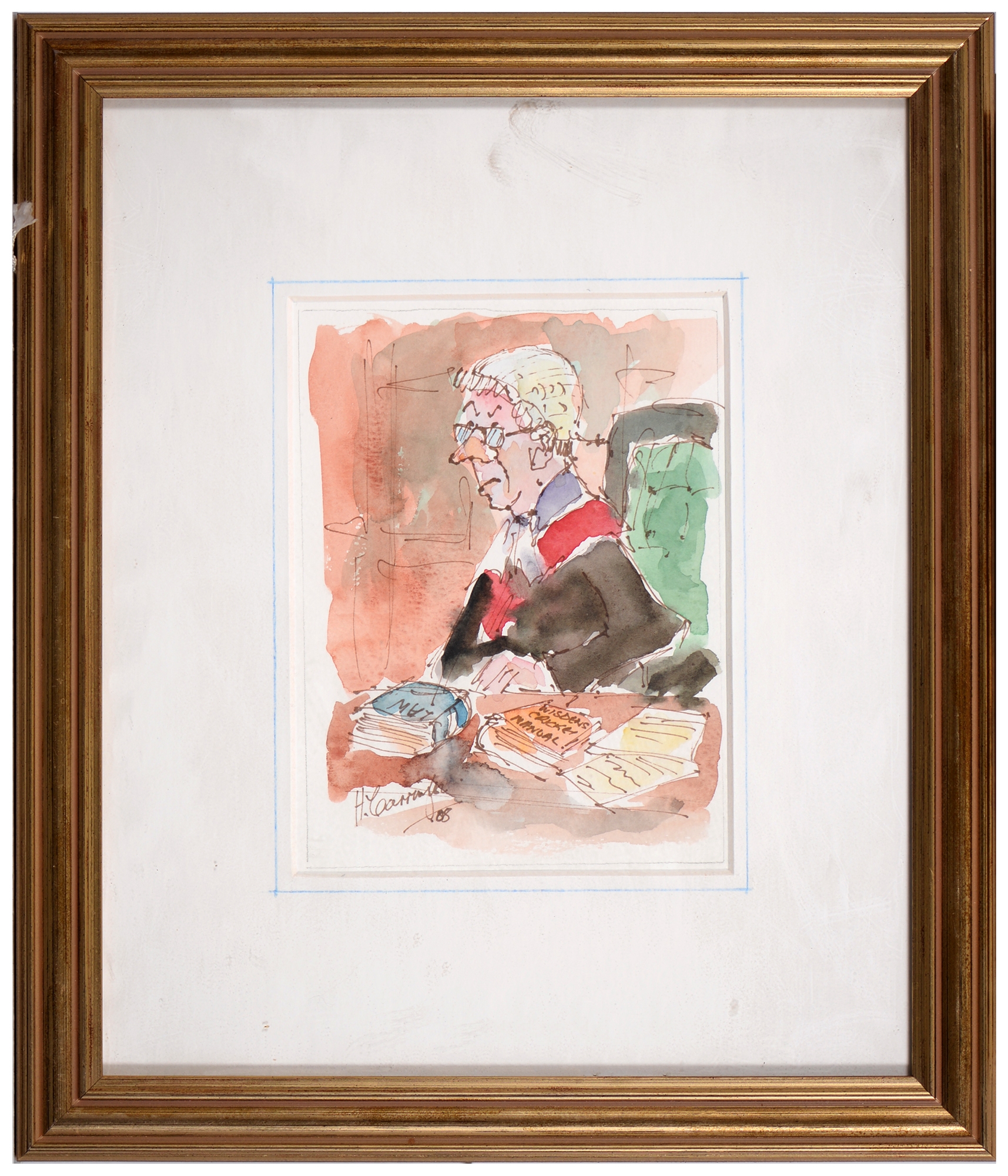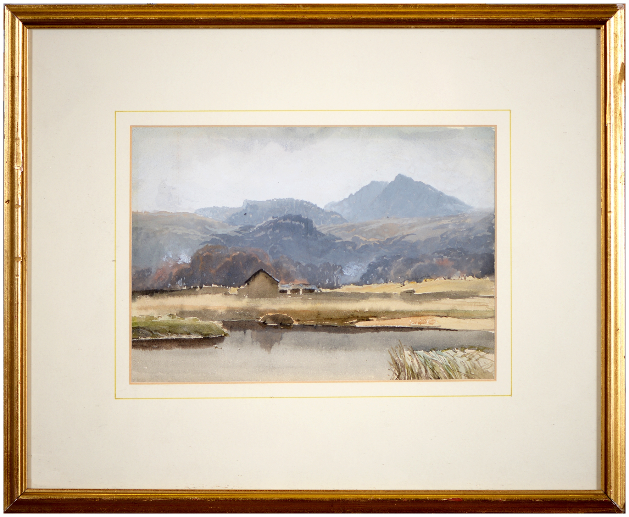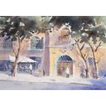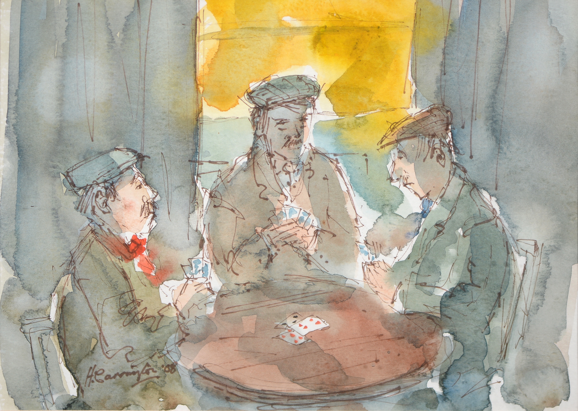 Sir Robin Darwin RA (1910-1974) - Mount St Victoire from Les Villes, signed and dated '17, pen, ink and watercolour with white, 23 x 33.5cm, Provenance: Thomas Agnew & Sons Ltd, Peter Cronin (1963- ) - European Street Scene with Cafe, signed, watercolour, 24.5 x 32.5cm, English School - A Rocky Coast, watercolour, 19.5 x 15.5cm and two other landscape watercolours, one by Patricia Hall, William Rayworth (c.1852-1908) - Still Lifes with Fruit, a pair, both signed, oil on white opaque glass, 19 x 24cm and Hedley Carrington (Fl. 20th / 21st c) - "Ships Cheese Please Ben Gunn Treasure Island"; Card Players; Judge, three, all signed and dated '08 or '10, pen, ink and wash, 15.5 x 21.5cm and smaller and a watercolour of a tower by another, 1956 (11)