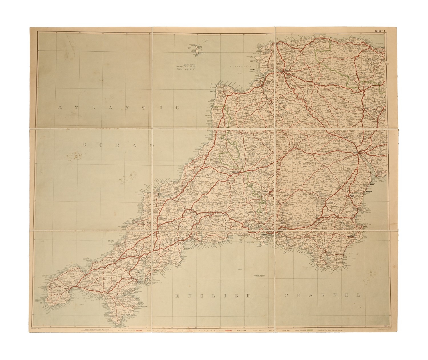 A Road Atlas of England and Wales, by George Phillip & Son Ltd, in ten individually numbered folding sections, 76 x 92cm, original brown leather carry case