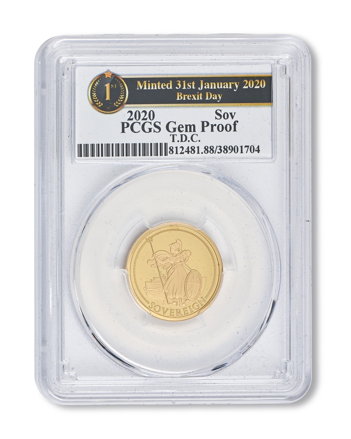 Gold coin. Tristan da Cunha, proof commemorative Sovereign 2020, encapsulated, cased