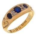 A Victorian sapphire and diamond ring, in 18ct gold, Chester, date letter rubbed, probably 1899, 4g, size H