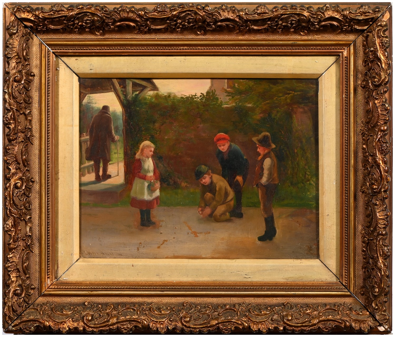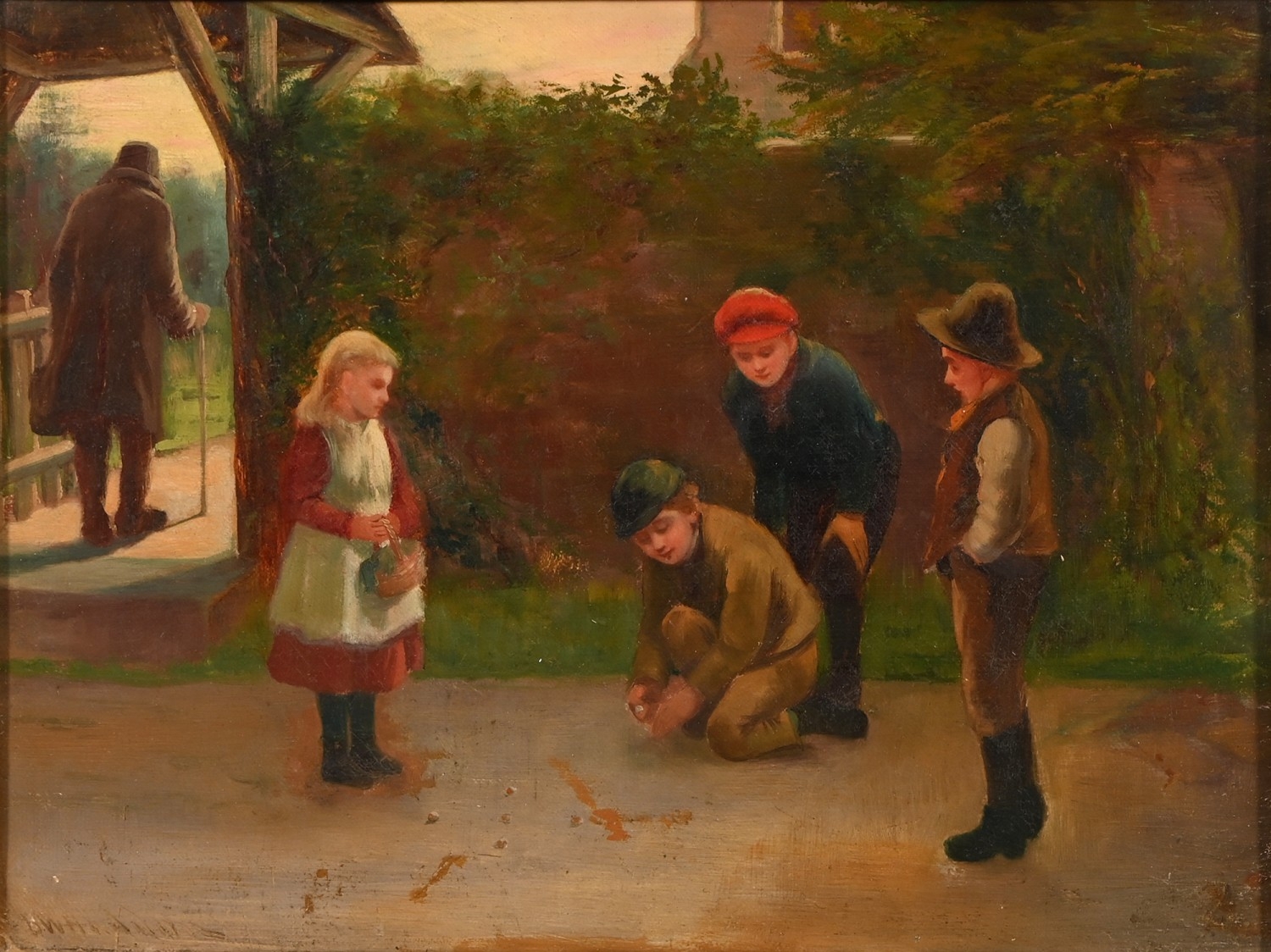 David Wood Haddon (1859-1914) - A Game of Marbles, signed, oil on canvas, 25 x 34cm