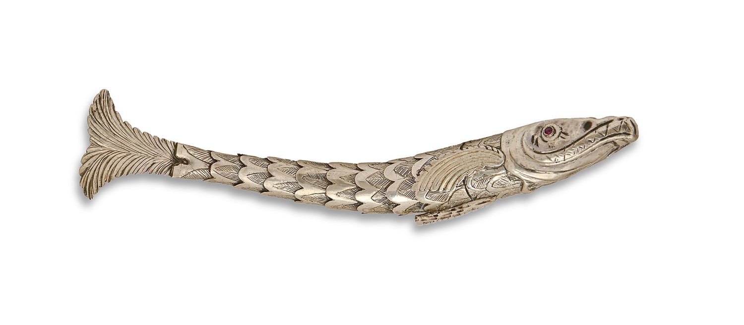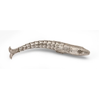 A Continental silver articulated fish scent bottle, early 20th c, with glass eyes, 15.5cm l, 1oz