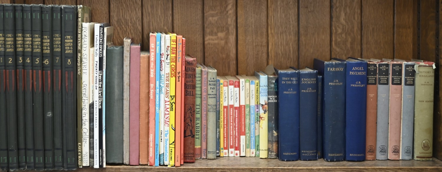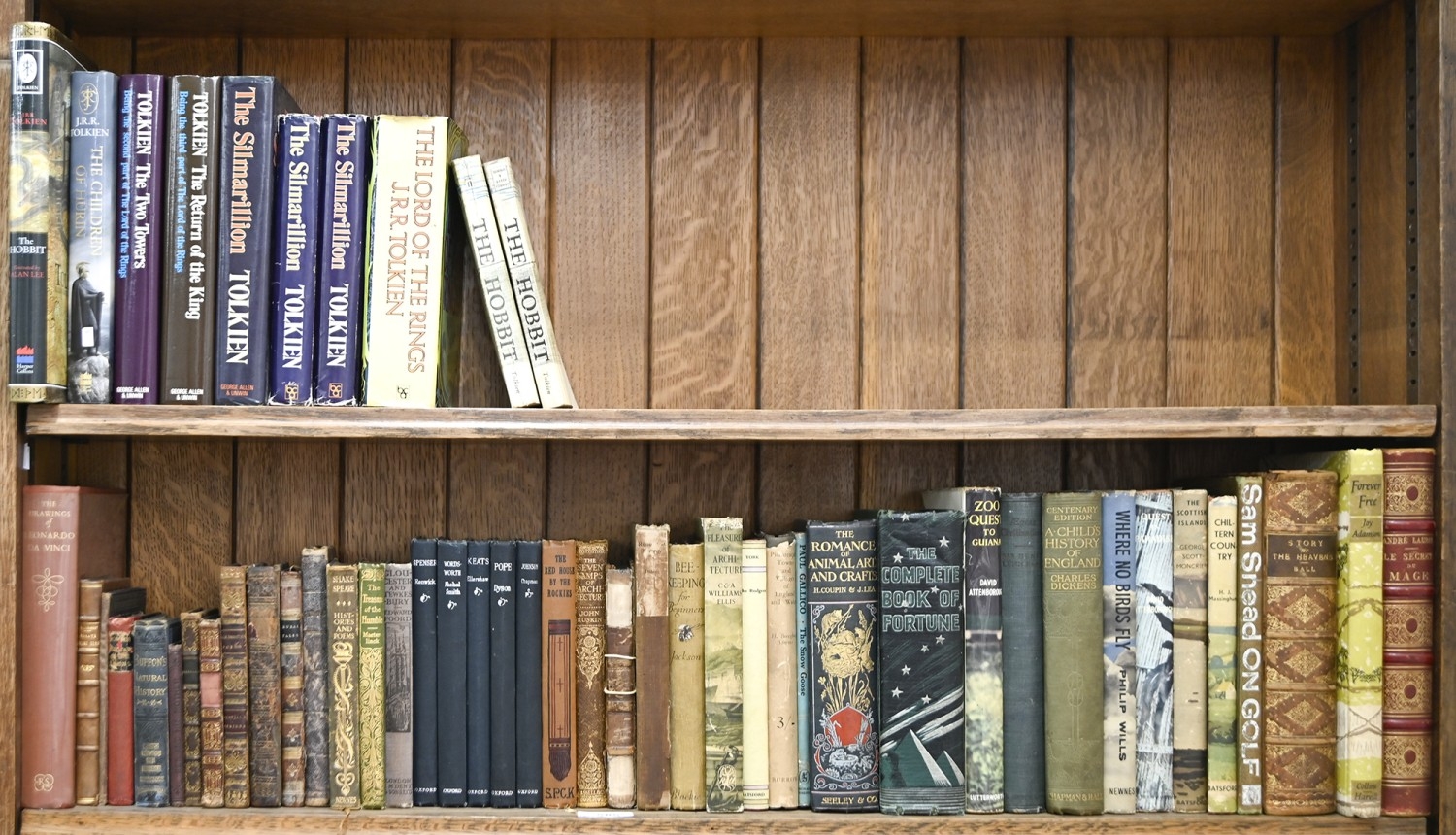 Antiquarian and Later Books. Two shelves, early 19th c and later, including The Complete Book of Fortune: A Comprehensive Study of the Occult Sciences, first edition, [London]: Associated Newspapers Ltd, n.d. [c. 1930], original pictorial cloth, 8vo; later impressions of Tolkien, including some books of The Lord of the Rings trilogy, some hardback with dustjackets; decorative leather and part-leather bindings; Batsford books with original pictorial dustjackets; Enid Blyton; other children's books and annuals; bee-keeping; etc., mixed bindings and sizes