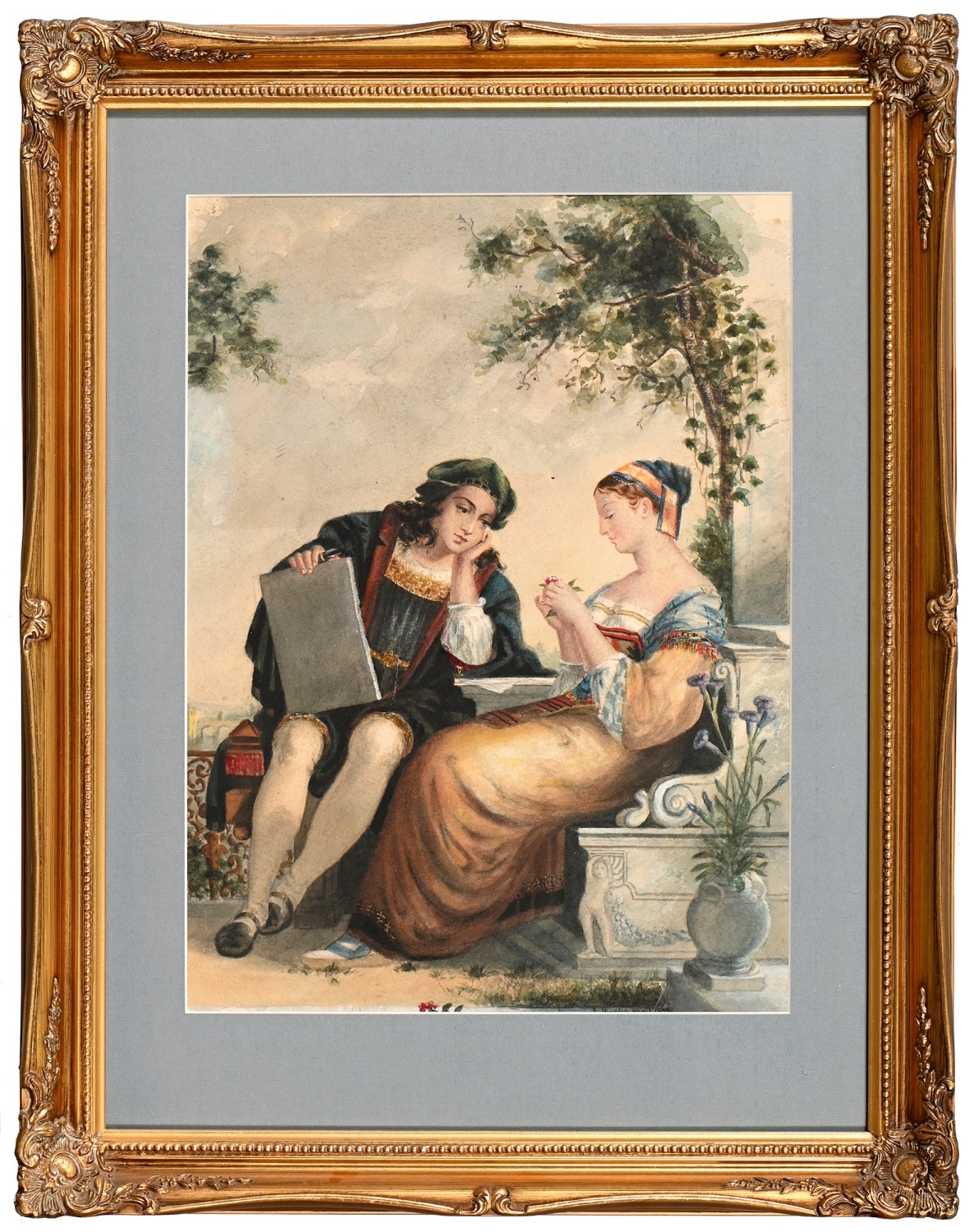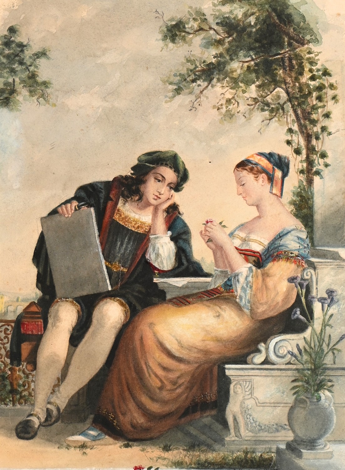 A. Beebe, second-half 19th century - Courting Renaissance Figures, signed and dated 1875, watercolour, 47.5 x 35cm