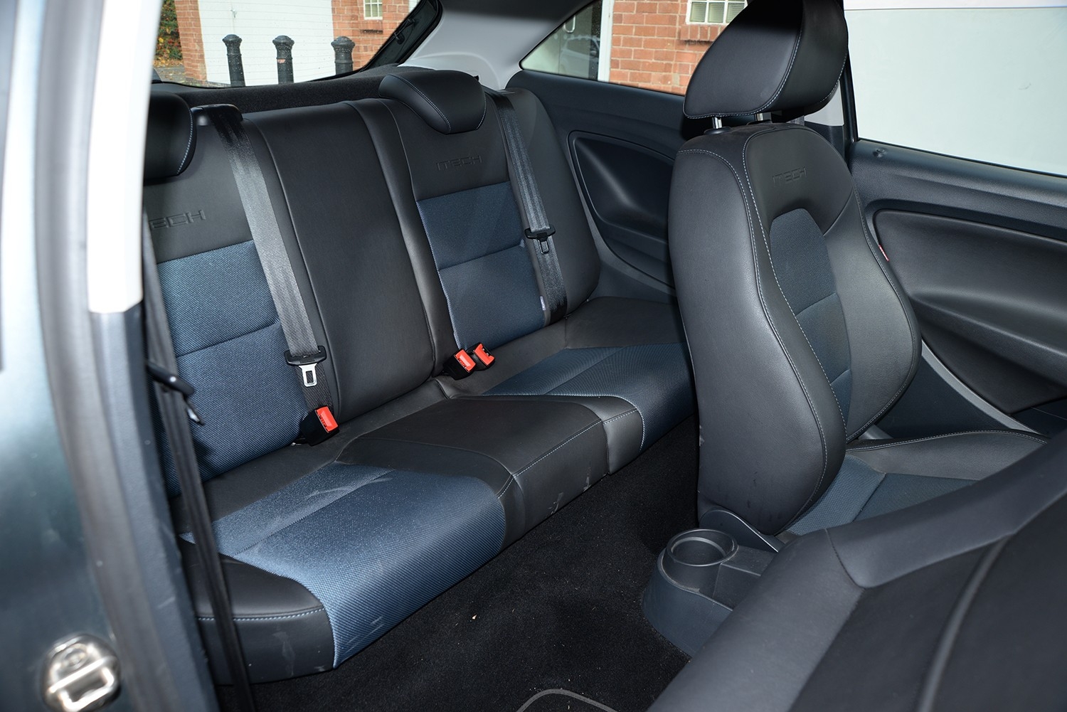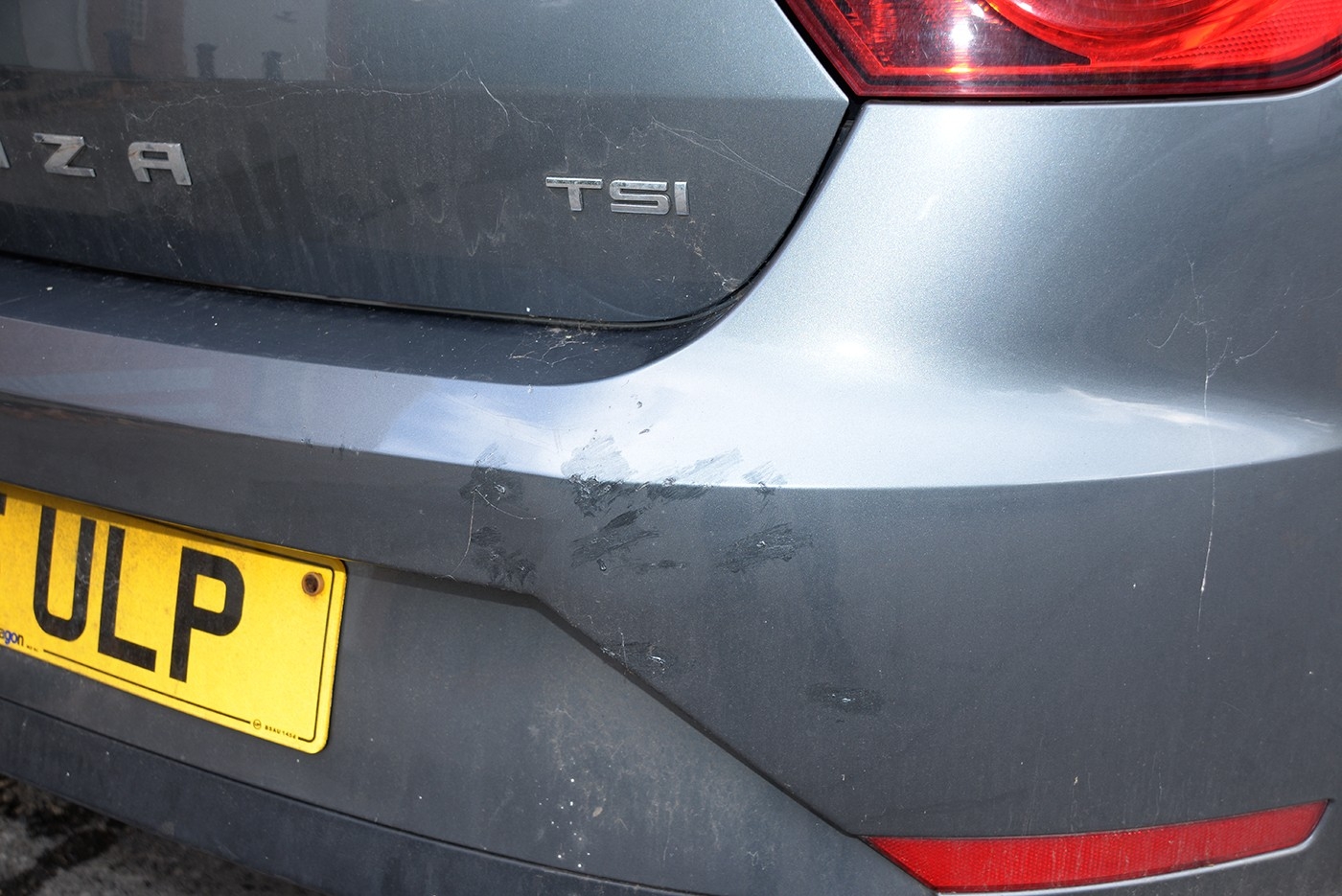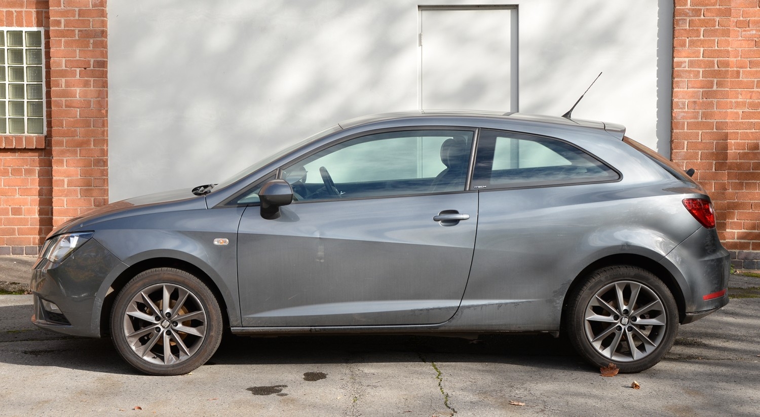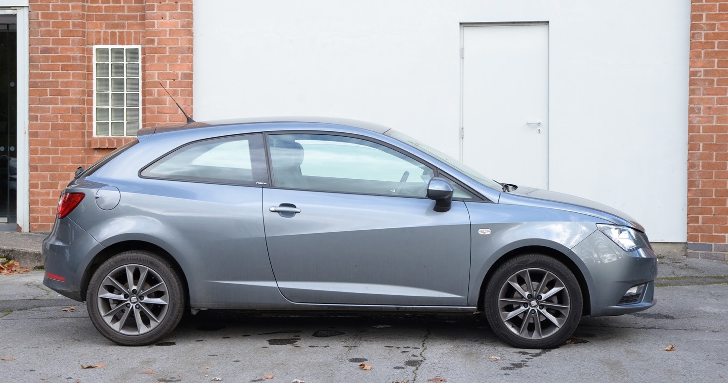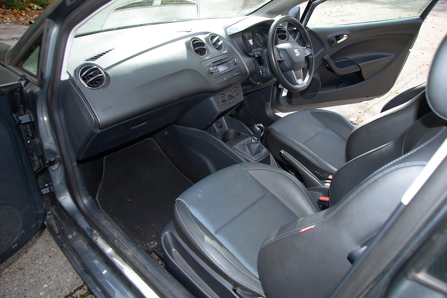 Motor Car. 2015 low mileage Seat Ibiza I-Tech TSI 2-door coupe, 1197 cc, petrol engine, manual transmission, grey, part leather and blue cloth interior seats, two keys, registration number DE15 ULP, 38252 miles, V5 certificate, first registered in April 2015, MOT expired 28 March 2025
