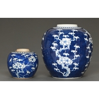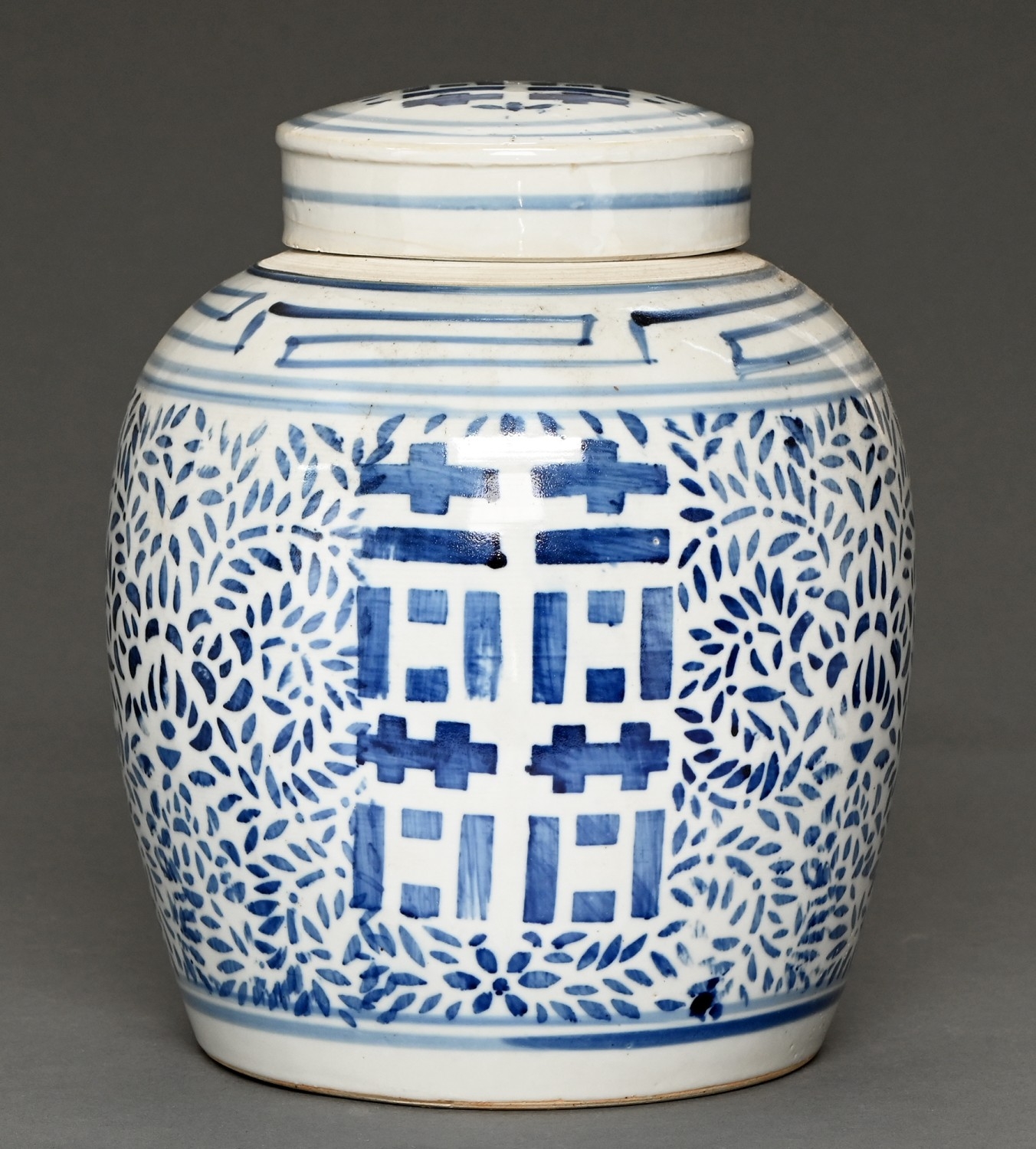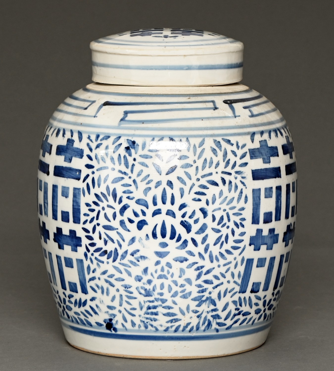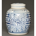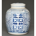 A Chinese blue and white ‘double happiness’ temple jar and cover, 20th c, 25cm h