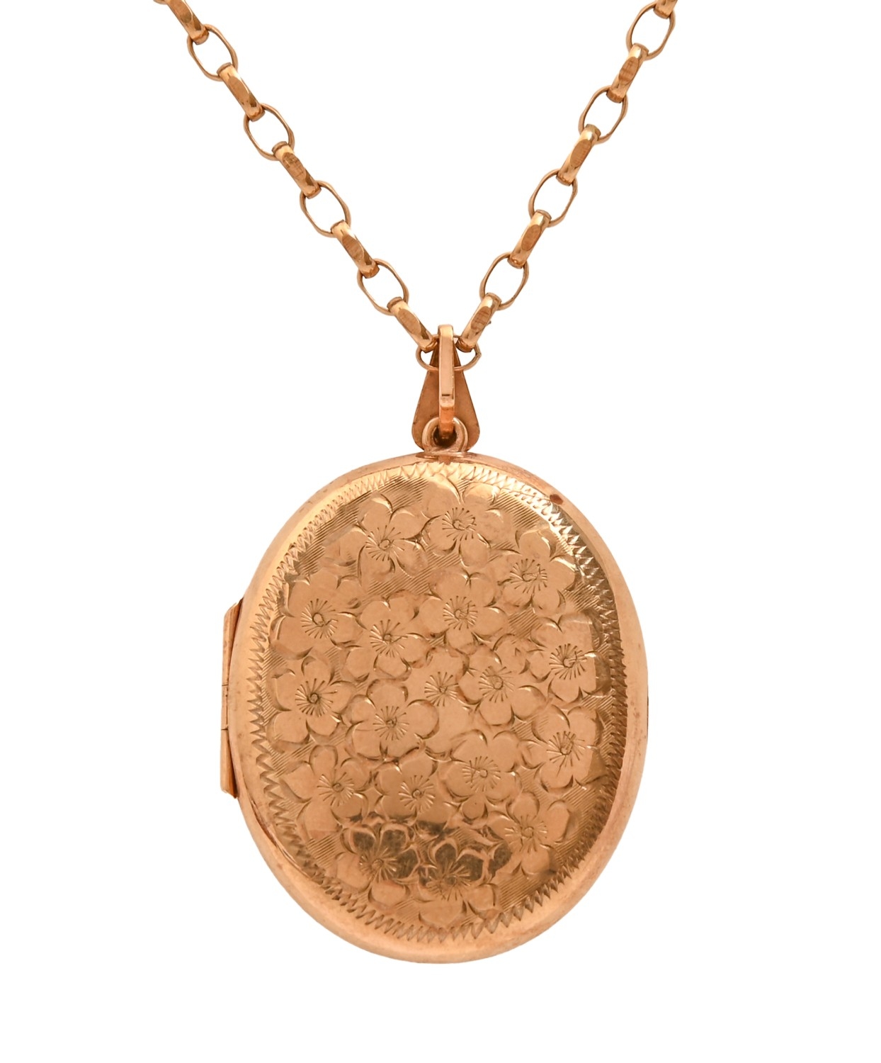 A 9ct gold locket, 4cm h, Birmingham 1986, on 9ct gold chain, 19.7g