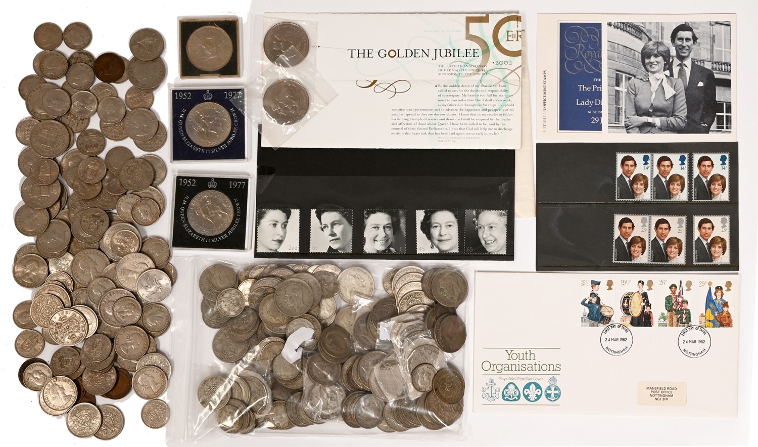 Miscellaneous British coins, pre-1946 and later, including commemorative Crowns and first day covers