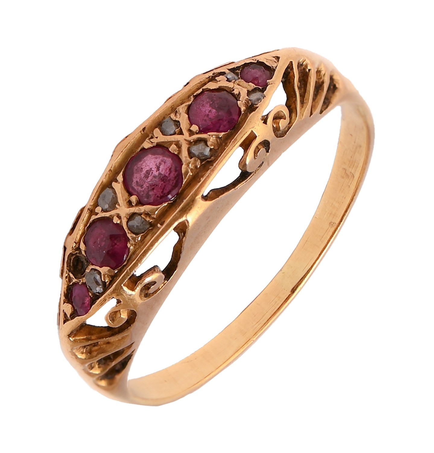 A ruby and diamond ring, in 18ct gold, part marked, 3.1g, size O