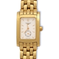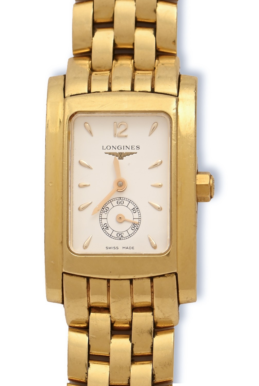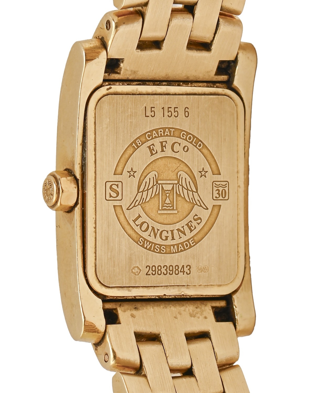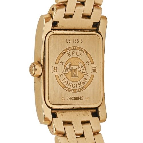 A Longines 18ct gold lady's wristwatch, DolceVita, Ref L5.155.6, quartz movement, 30 x 20mm, on maker's 18ct gold bracelet with deployent buckle, spare gold bracelet link, maker's papers and box, 74g