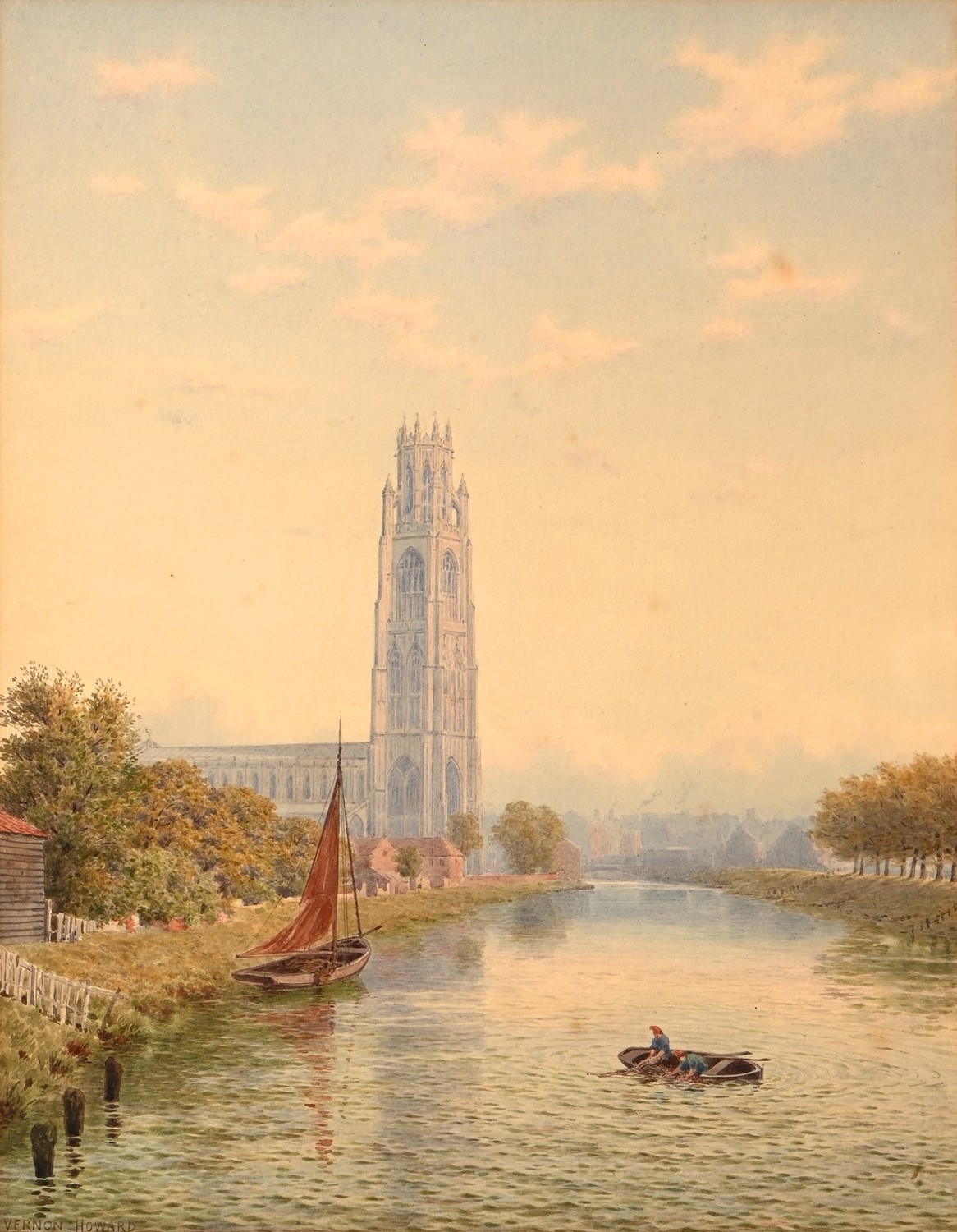 Vernon Howard (1840-1902) - St Botolph's Church (The Boston Stump), signed, watercolour, 45.5 x 35.5cm