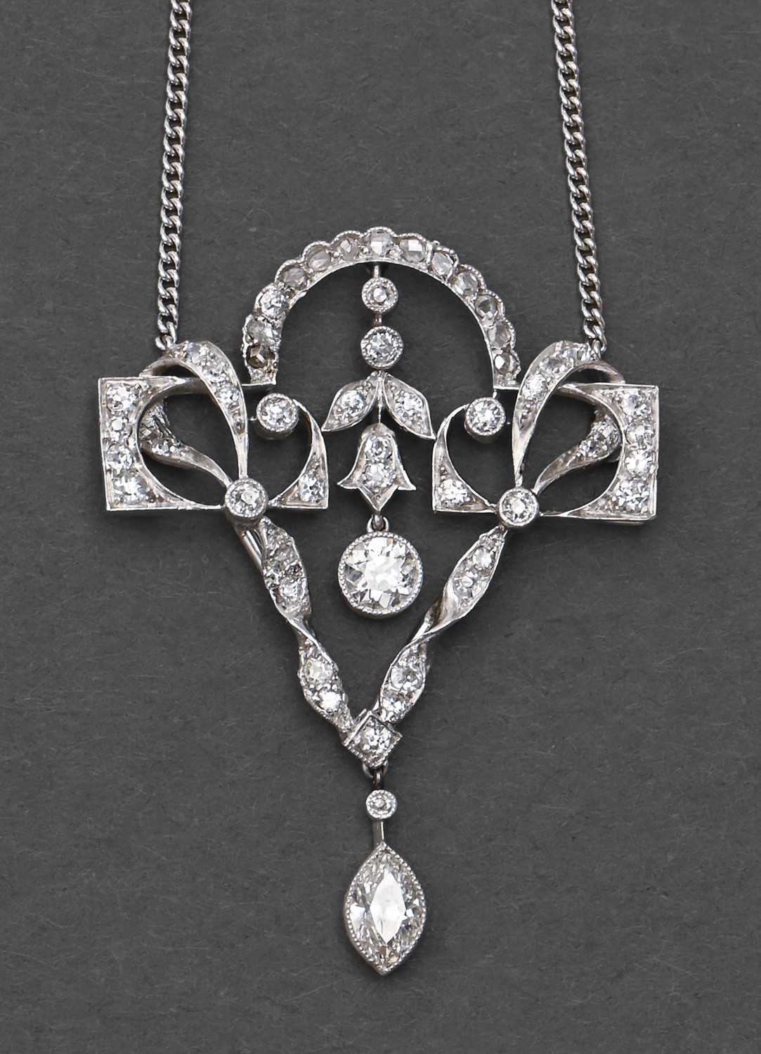 A diamond pendant, in white gold, on integral 18ct white gold necklet, pendant 42mm h, 8.8g