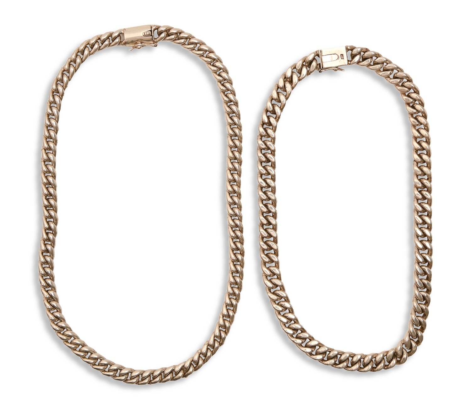 Two silver curb chains, 40 and 45cm l, marked 925, 6oz 12dwt