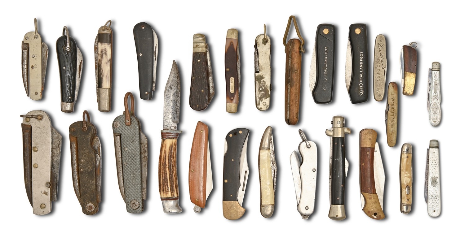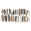 Miscellaneous folding knives, Victorian and later, to include two silver fruit knives, with mother-of-pearl scales (24)