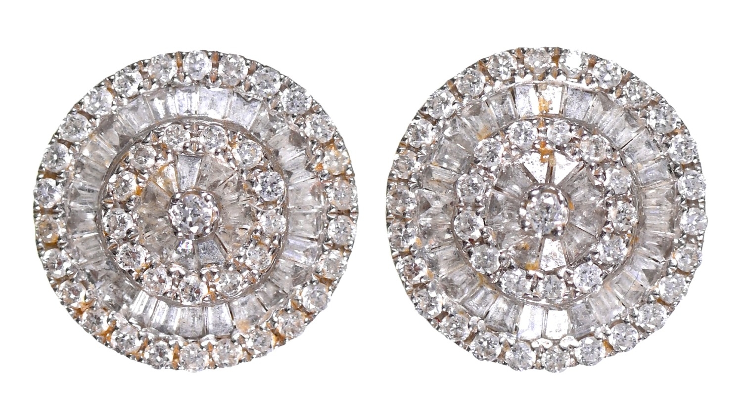 A pair of diamond ear studs, in 18ct white gold, 9.5mm diam, part marked, 3.2g