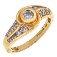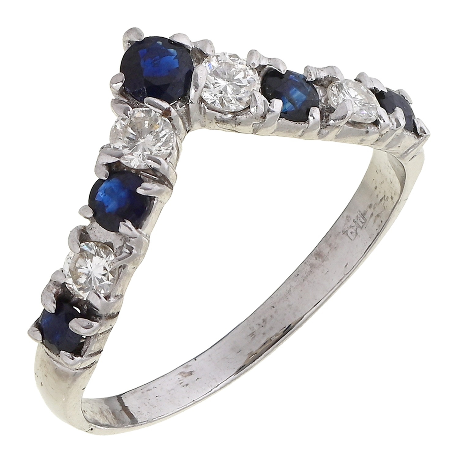 A sapphire and diamond dart ring, in 18ct white gold, marks rubbed, 1980, 3g, size P