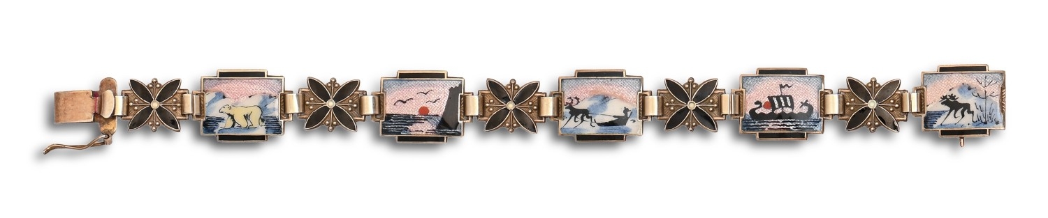 A Norwegian silver and enamel arctic bracelet, 17.5cm l, by Aksel Holmsen, marked Norne, 17.6g