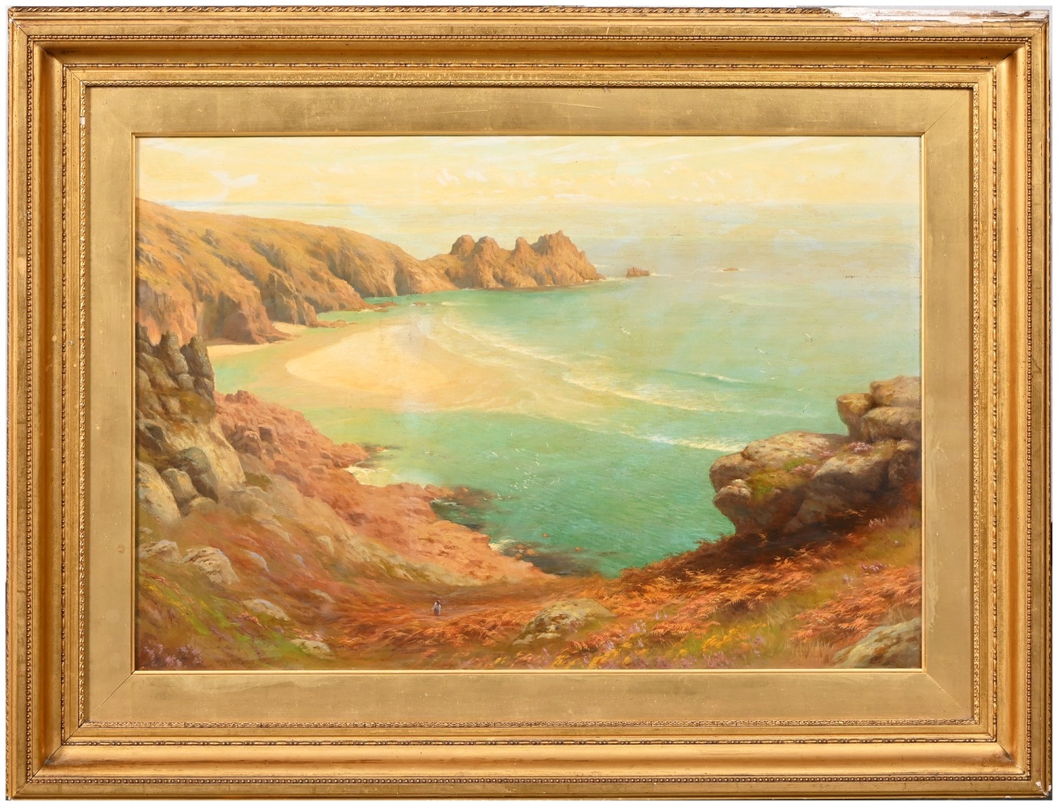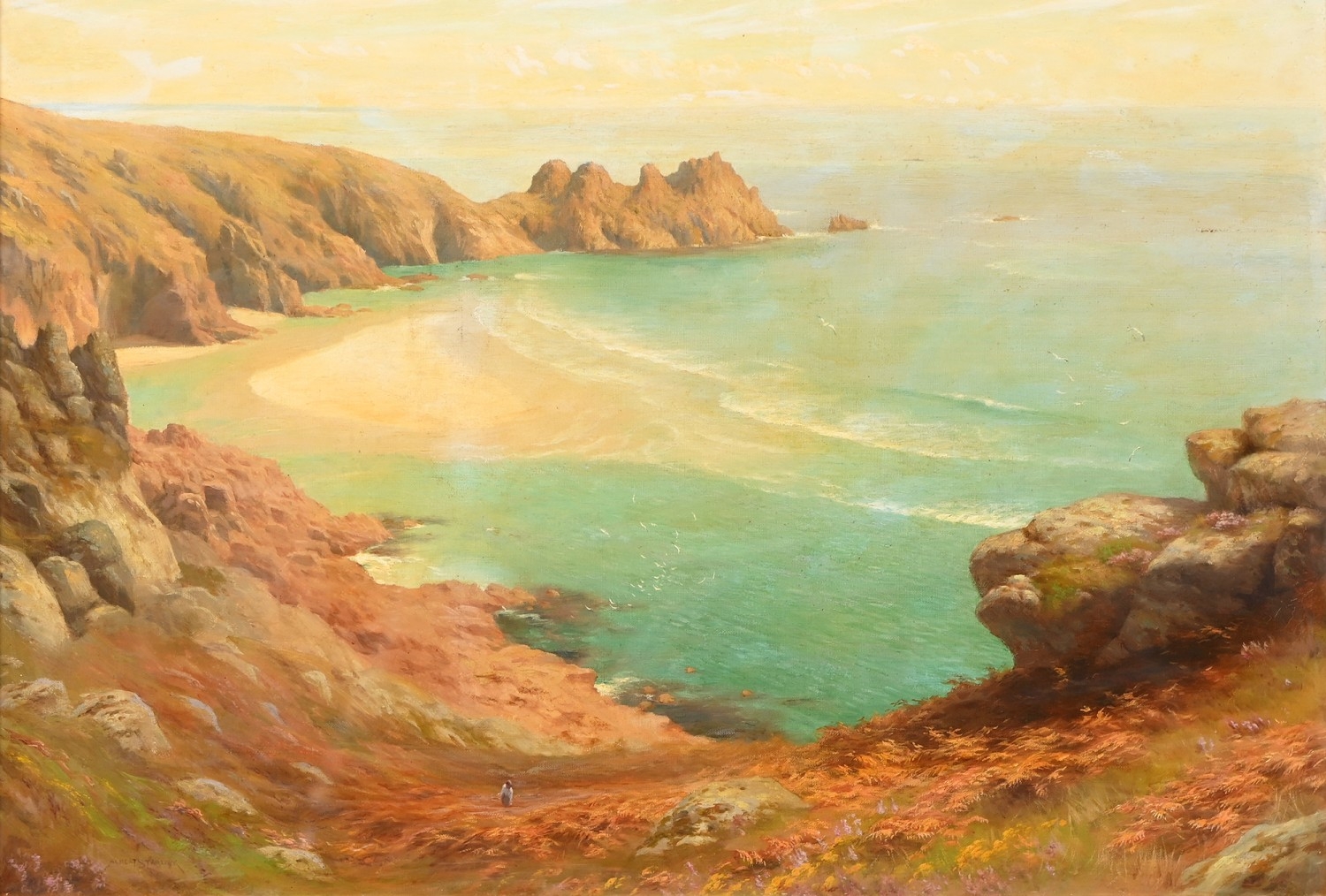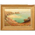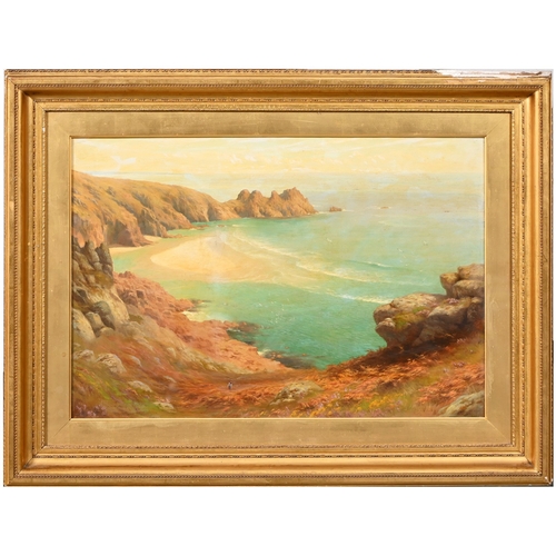 Albert Starling (1858-1947) - Pedn Vounder and The Logan Rock near Porthcurno, Cornwall, signed, oil on canvas, 50 x 74cm