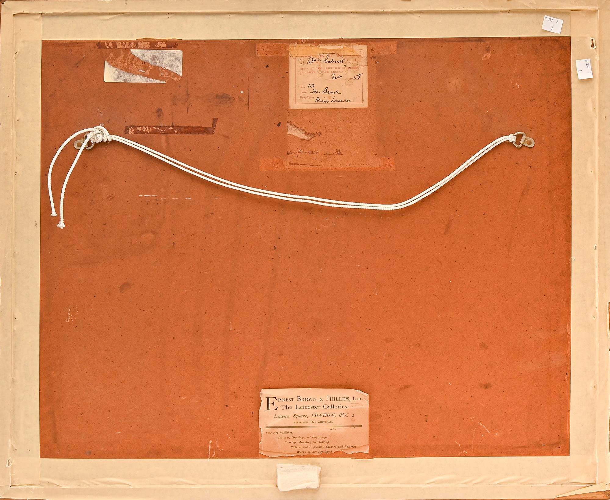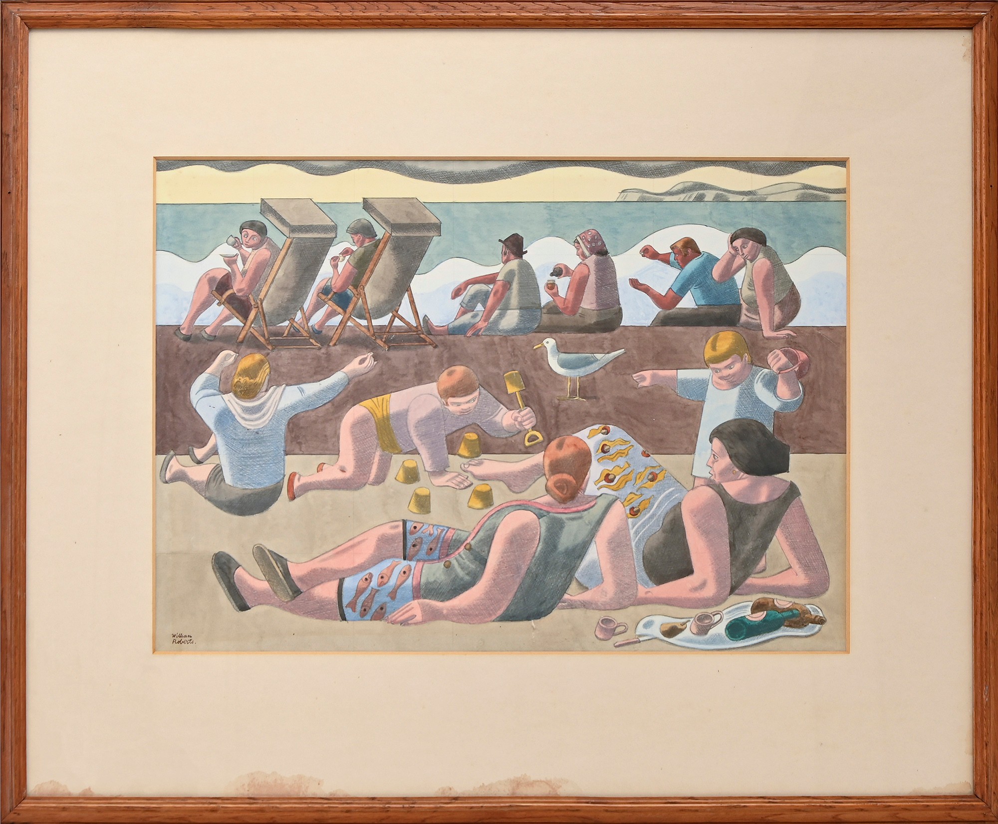Provenance: 1) Possibly exhibited at the London Artists’ Association, 1933, along with several working and finished Beach related works, dated c. 1929. 2) Exhibited by Ernest Brown & Phillips, Ltd., at The Leicester Galleries, W.C.2., 'Paintings and Drawings by William Roberts', February 1958, whence purchased by a Miss Lander; printed and inscribed gallery labels verso.
