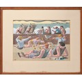A boldly coloured study squared for transfer. For the corresponding pencil sketch, dated c. 1929, see the Roberts collection at Tate Britain, 'Families on a beach', T12629.