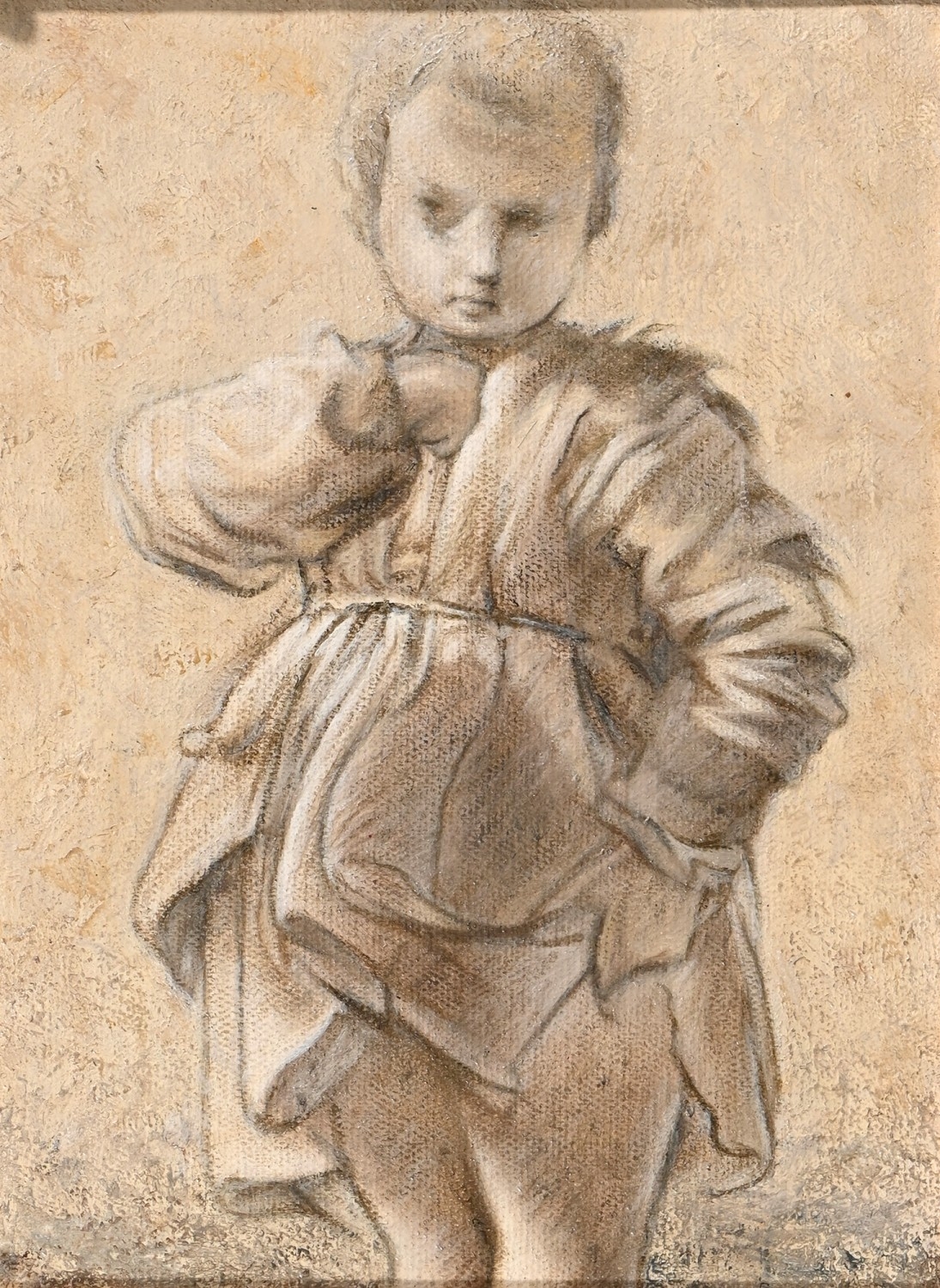 Bayardo, 20th century - Portrait of a Young Nobleman, after an Elizabethan original, signed, oil on board, tondo, 21.5cm diam; another study of a boy, oil on canvas, 19.5 x 14cm, (2)